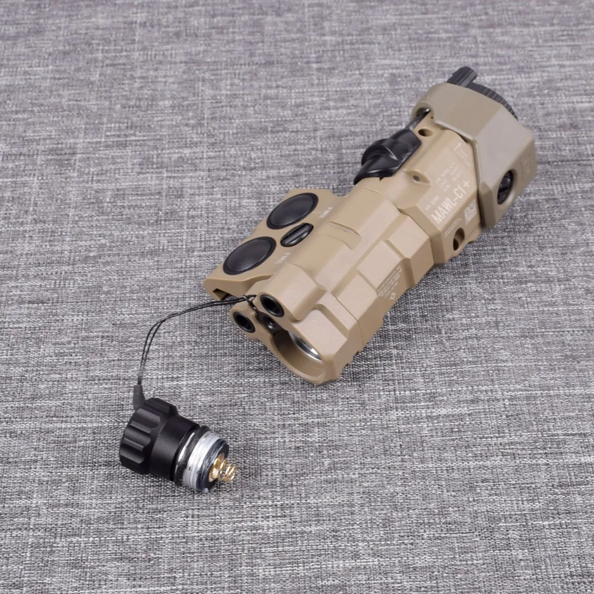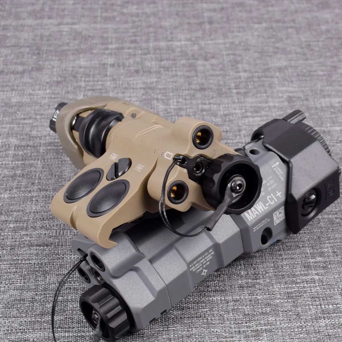 El cabezal MAWL tiene dos LED integrados visibles solo para el tirador. Hay dos, por lo que al posicionarse para un tirador zurdo o diestro, se puede ver al menos uno. Cuando MAWL se cambia a VIS o IR, emitirán luz amarilla. Esto le permite saber que el dispositivo está encendido. Cuando presione el botón A o B, El LED se iluminará en verde. Esto es especialmente útil cuando está en modo IR, porque no puede ver el haz a simple vista.