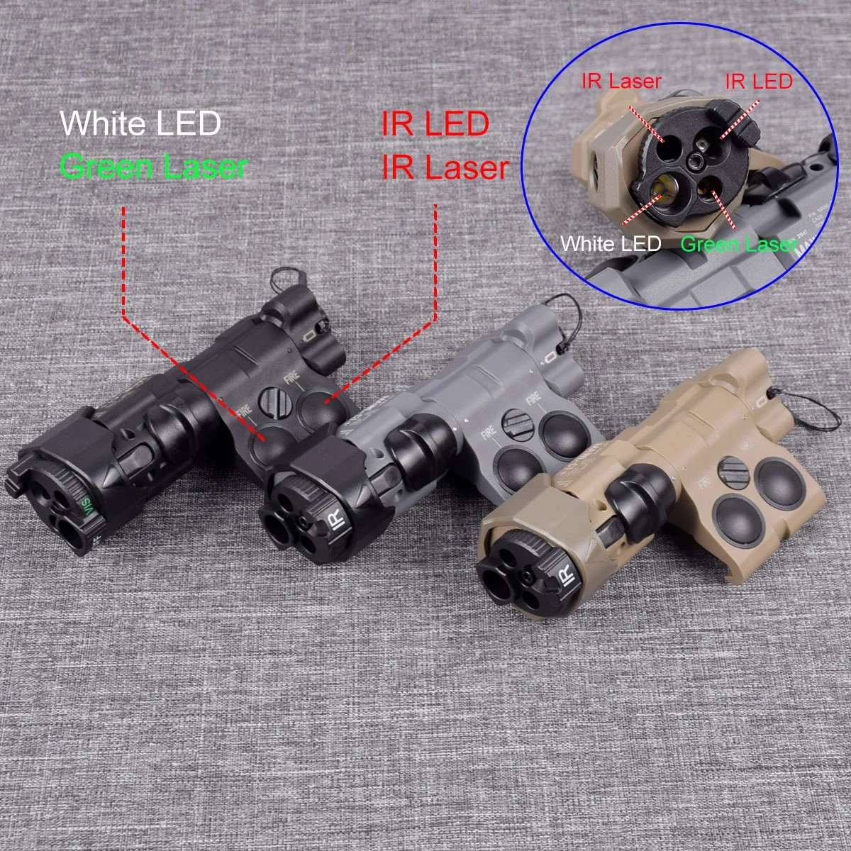 Hecho con nylon, láser visible de 5MW/635nm, láser IR: 0,7 MW/850nm