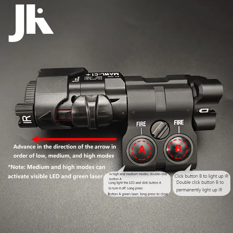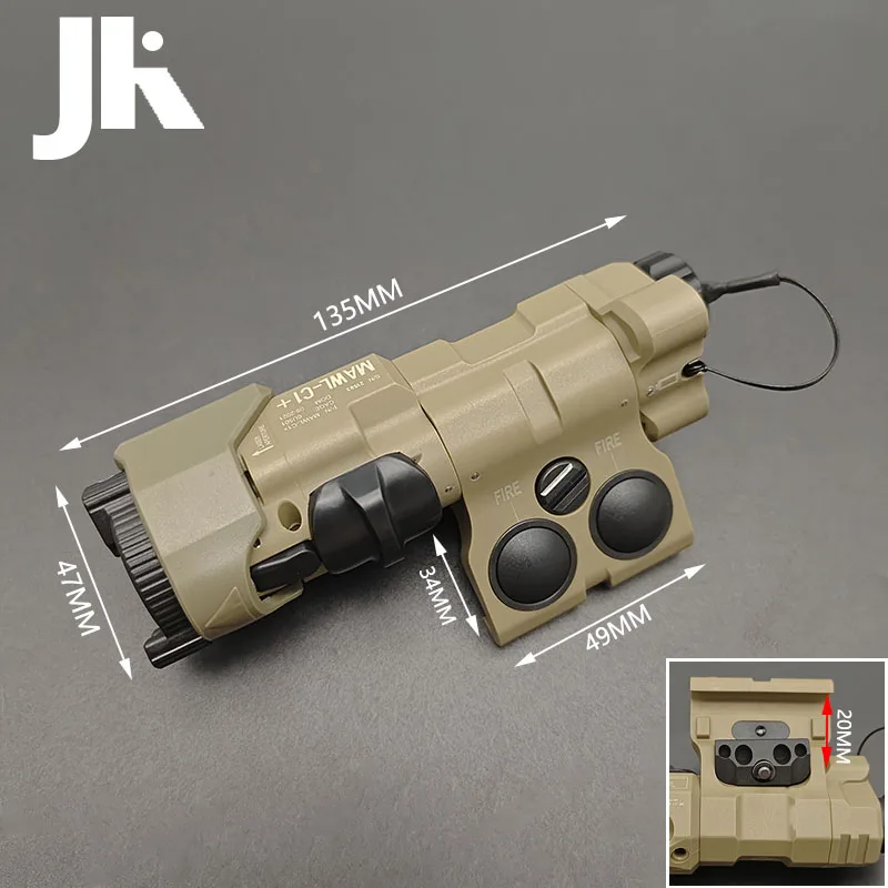 Linterna táctica de nailon MAWL C1 con láser verde, luz de relleno IR, luz LED para mira de arma, compatible con riel Picatinny de 20mm