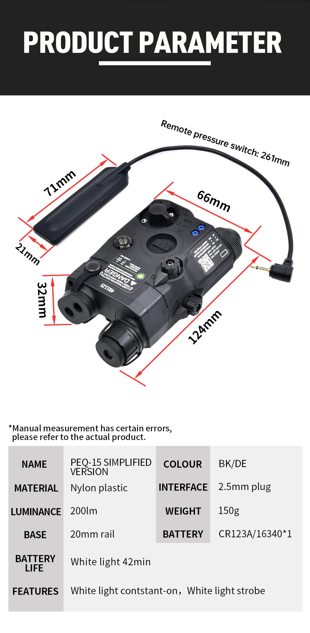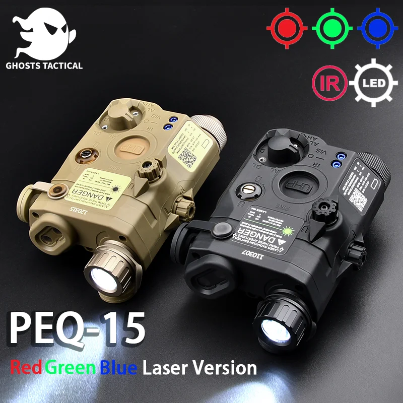 Linterna táctica PEQ15, luz LED blanca de edición roja, verde y azul, accesorios de caza para armas, compatible con riel de 20mm