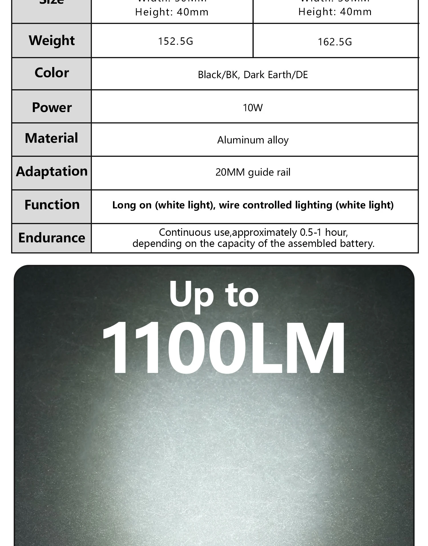 Linterna táctica PLH V2, luz de explorador de alta potencia de 1300 lúmenes con interruptor Modbutton y Base de montaje para equipo Airsoft
