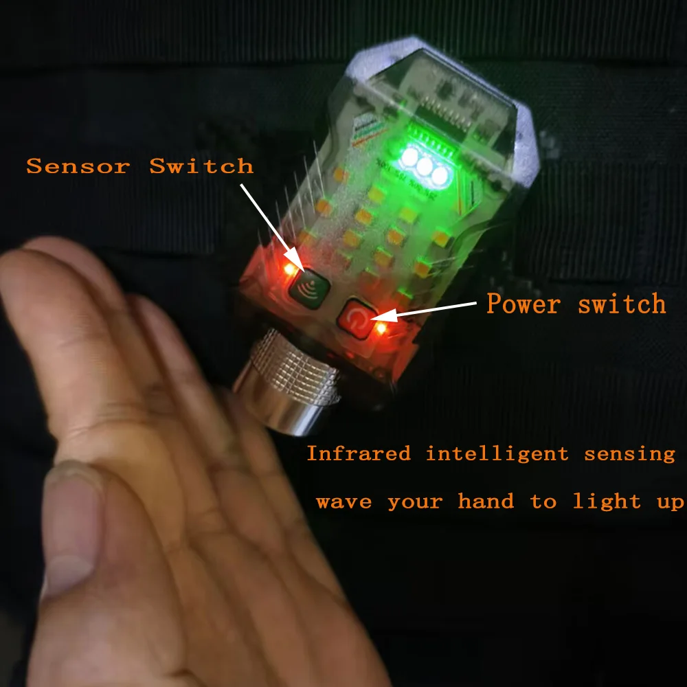 Linterna táctica con Sensor inteligente EDC, Mini luz portátil para acampar, senderismo, luz intermitente de seguridad, luz de señal de supervivencia, luz para casco