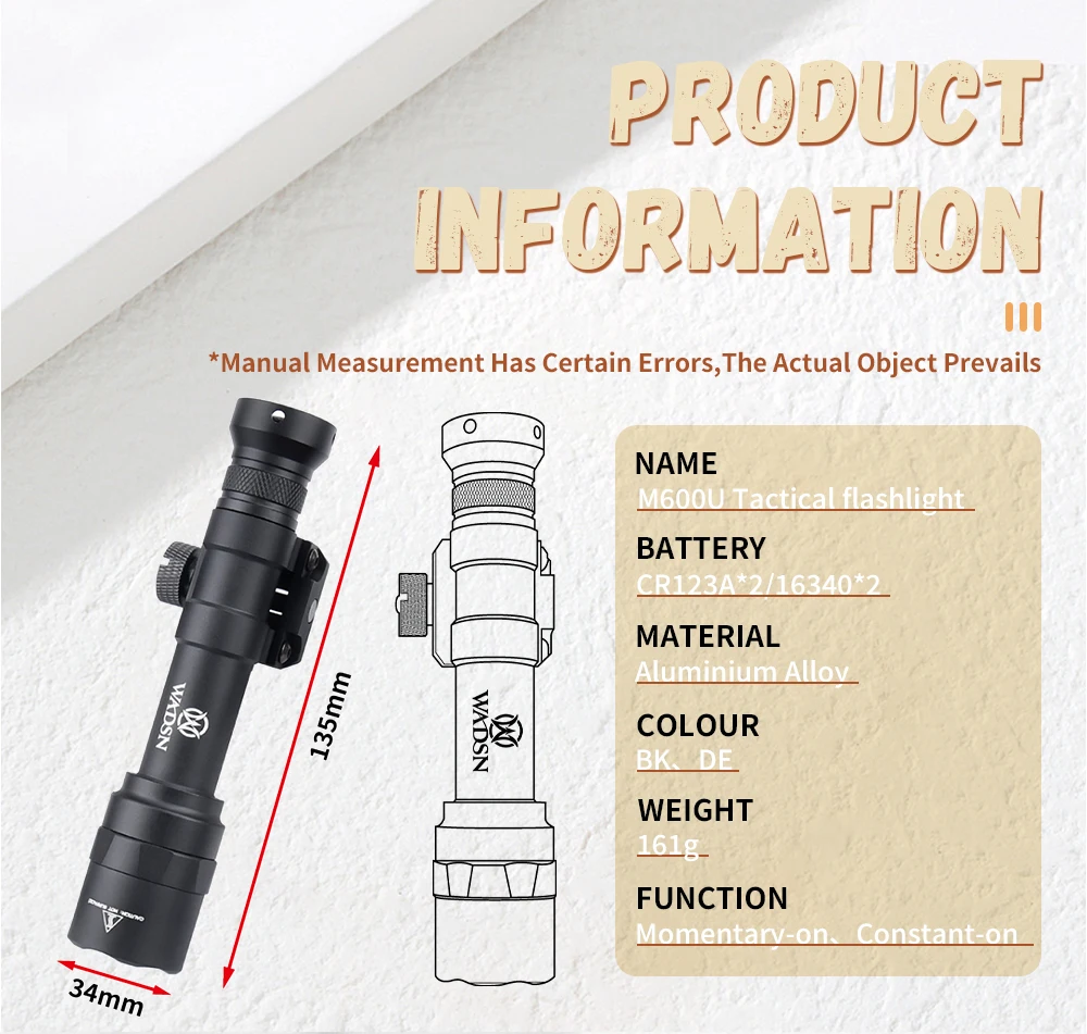 Linterna táctica SF M600U Surefire M600 linterna LED blanca potente linterna de Metal CNC Softair con tapa trasera constante