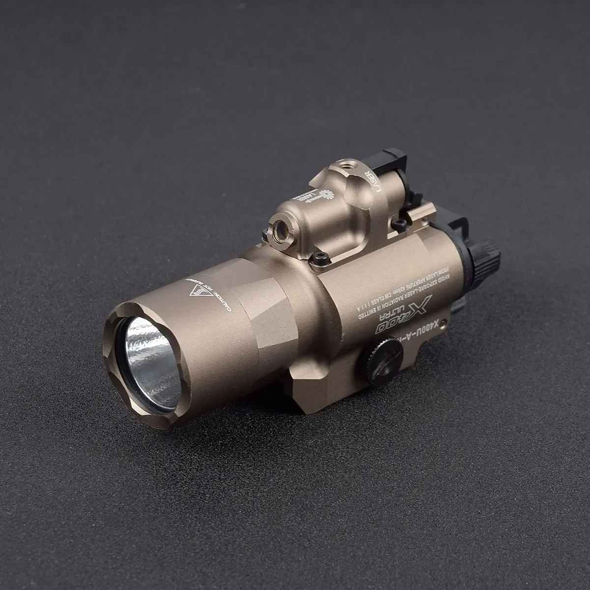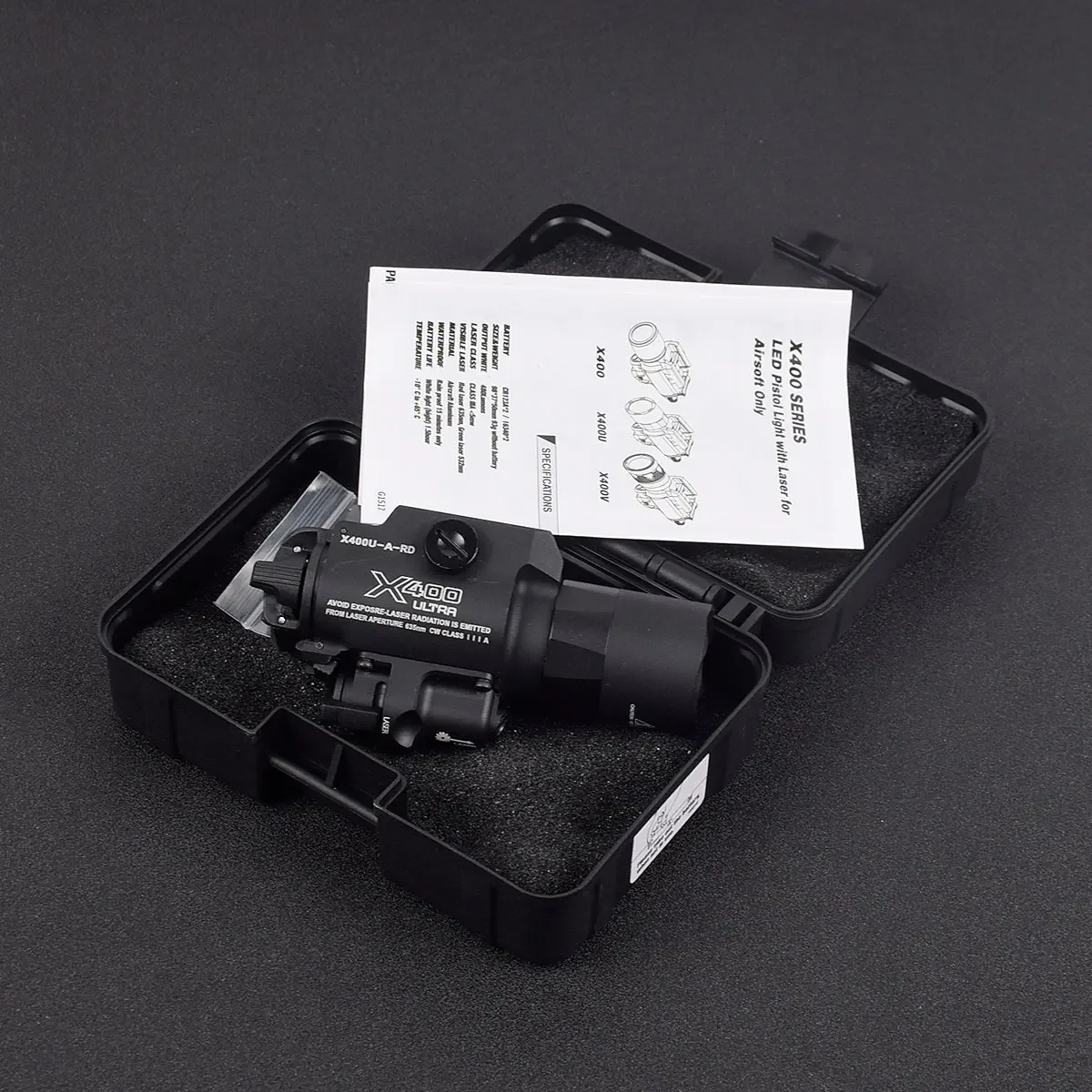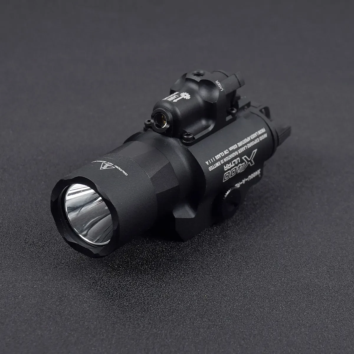 Prácticamente indestructible: LED de 500 lúmenes regulado para maximizar la salida y el tiempo de funcionamiento Visor láser rojo de 5 mW de alta visibilidad Lente TIR para aplicaciones cercanas a medianas Abrazadera de riel de desmontaje rápido con adaptadores para rieles Picatinny y universales Acepta agarre de pistola opcional y pistola larga Interruptores forend Construcción: aluminio aeroespacial de alta resistencia con anodizado Mil-Spec;polímero resistente a impactos;Ventana templada recubierta Junta tórica resistente a la intemperie y junta sellada