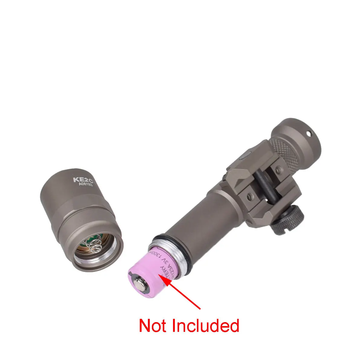 CARACTERÍSTICASEl LED de alto rendimiento está regulado para maximizar la salida de nivel táctico y el tiempo de funcionamiento por juego de baterías.Interruptores: cinta de encendido momentáneo (cable de 7"), pulsador de encendido constante.Sistema de montaje: abrazadera de tornillo de mariposa integrada para rieles Picatinny.Junta tórica resistente a la intemperie y sellado con junta.Construcción: aluminio aeroespacial de alta resistencia con anodizado Mil-Spec; Ventana recubierta y templada.Retire el cabezal y coloque la batería desde la parte frontal.PAQUETE1 linterna M600B.1 interruptor de cinta (cable de 7")1 interruptor de botón.1 X cinta mágicaPreguntas frecuentes:P:¿Qué batería se utiliza en este producto?