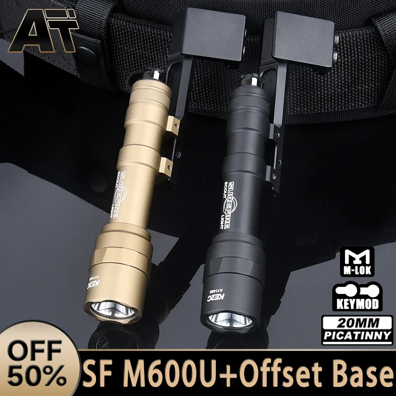 Linterna táctica Surefir SF M600U, LED blanco para caza, luz de explorador Airsoft, Base de montaje compensada compatible con accesorios para armas de riel de 20MM