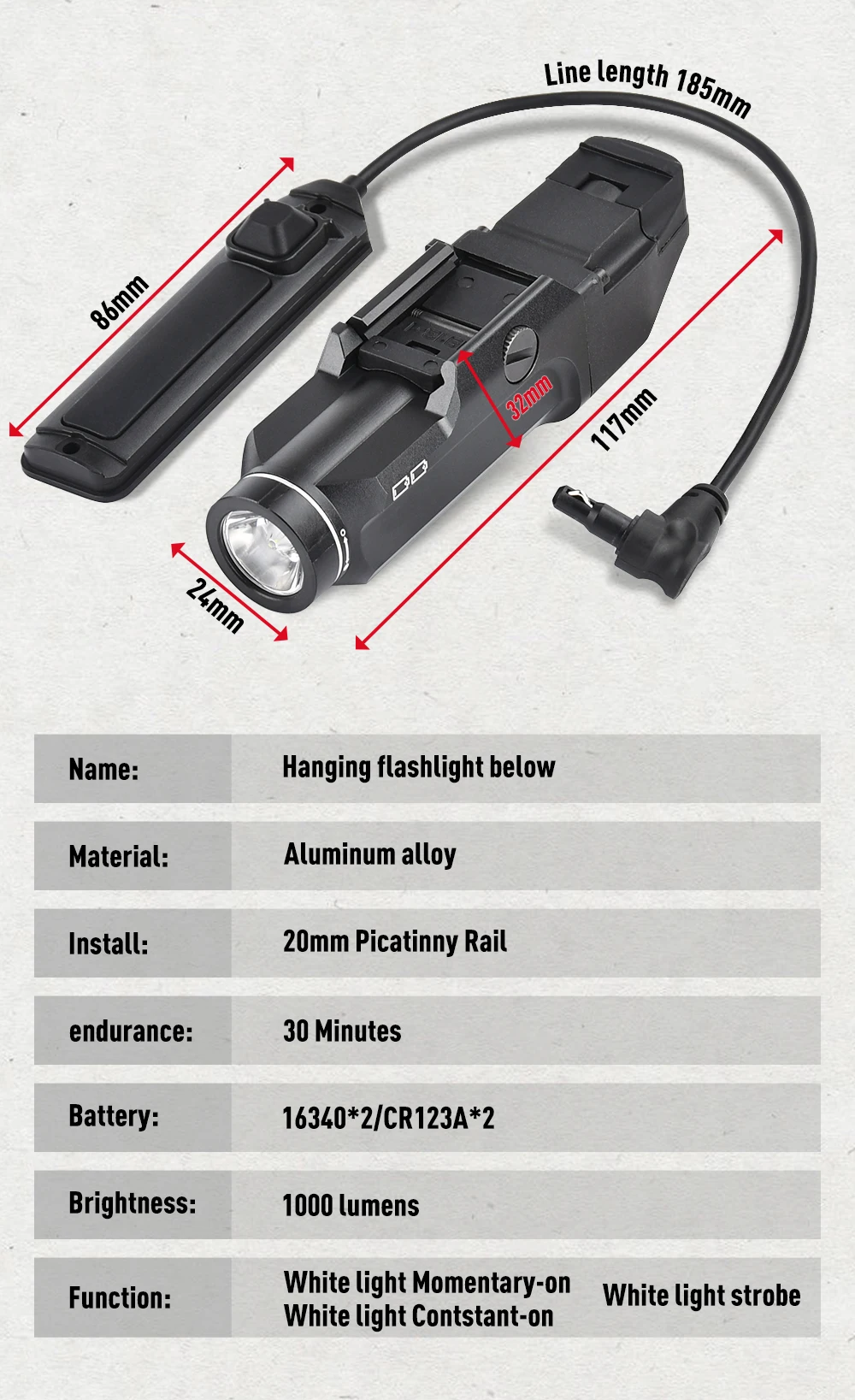 Linterna táctica de TL 9 TL-RM2 de WADSN, potente linterna de caza, pistola de Metal, lámpara de juguete M300 para CS Wargame