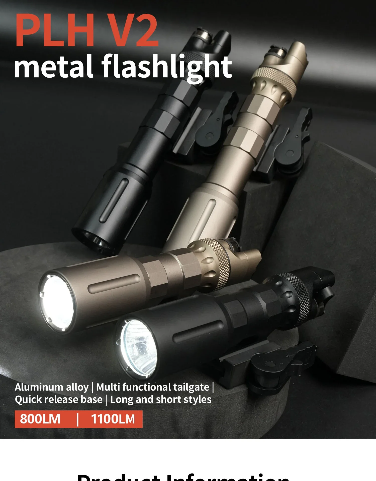 Linterna táctica V2, luz de caza de Metal, luz de explorador de alta potencia, 1100 lúmenes con tapa trasera de doble función, riel adecuado de 21mm