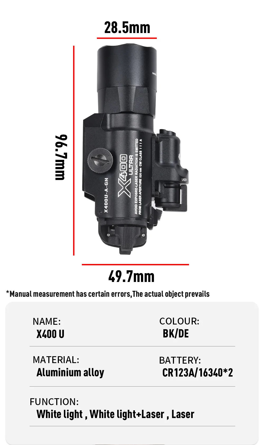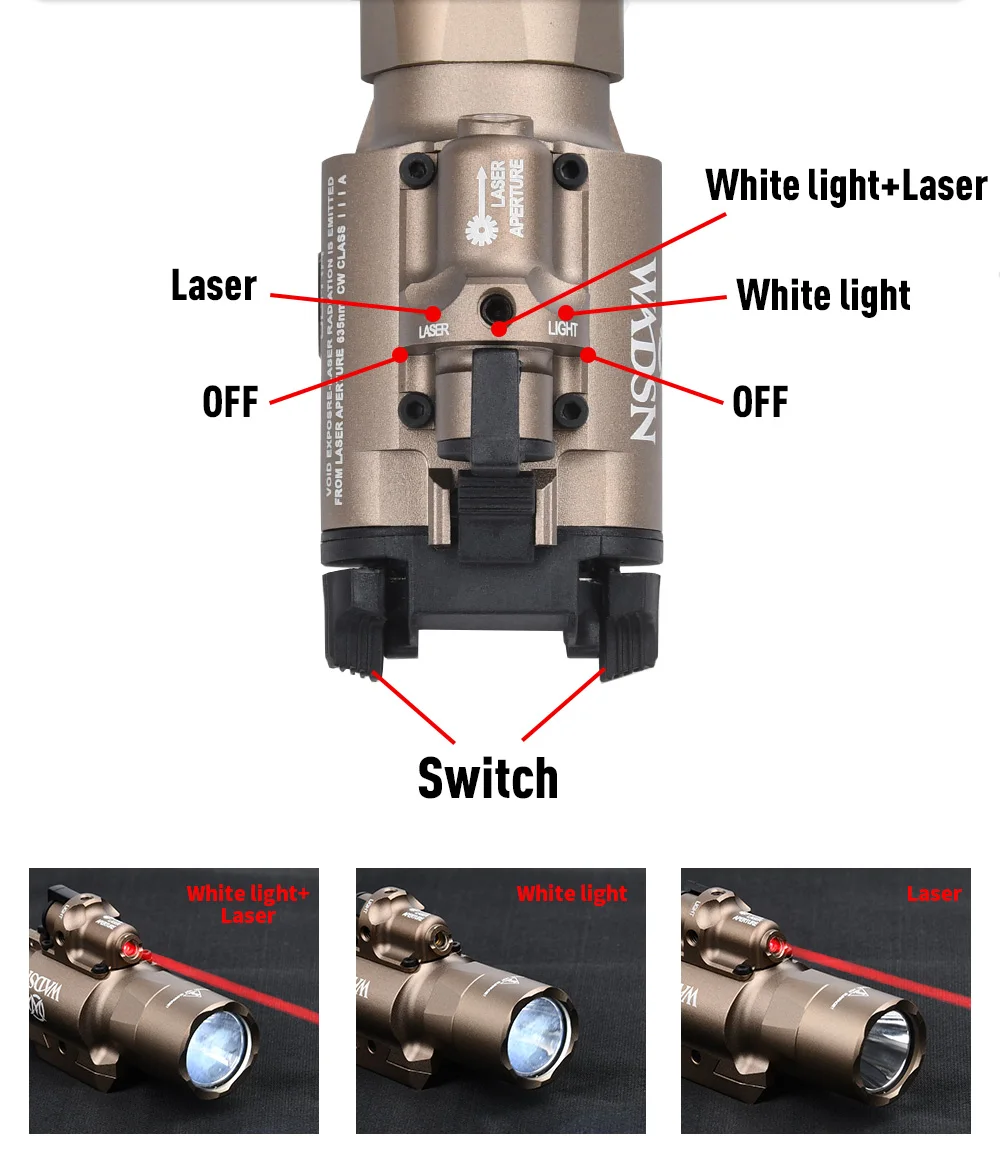 Linterna Ultra táctica WADSN X400U X400 con indicador láser rojo/Verde pistola G17 pistola de luz luz de la caza