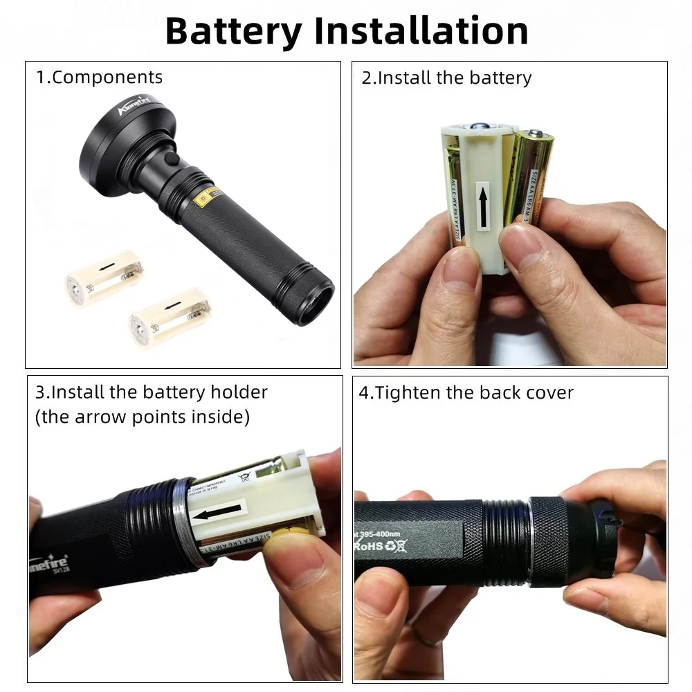 Luz ultravioleta de 385-400 nm, ¡es una bestia!¡40% más brillante que otras linternas UV!¡A probable la linterna ultravioleta más potente a este precio!!