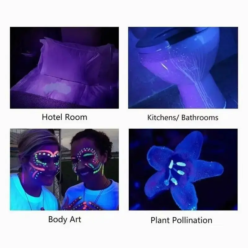 Le ayuda a detectar escorpiones desde 45 pies de distancia, secar manchas de orina de mascotas, senderos de orina de rata/ratón, fluidos corporales antihigiénicos y verificar los niveles de desinfección en habitaciones, alfombras, cocinas, aseos, etc.