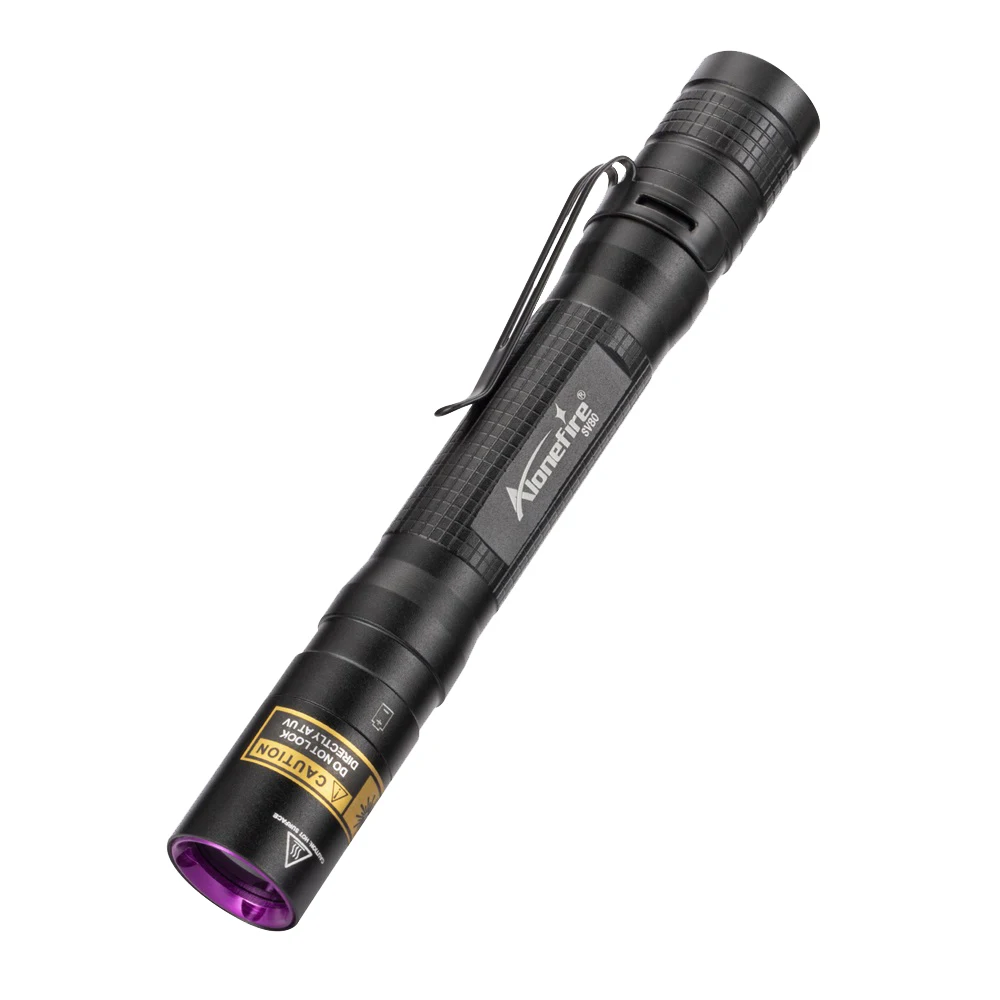 La luz ultravioleta de 365 nm es invisible a simple vista, por lo que no es tan BRILLANTE como la linterna de 395 nm, sino más perfecta para detectar una alta demanda como agentes fluorescentes y códigos de seguridad.UV de 365 nm es el espectro de detección realmente dedicado.Se puede utilizar con luz natural y funciona mejor en la oscuridad con poca fuga de luz visible.Se puede utilizar como detector de orina/escorpion/buscador/fluorescente/detector/moneda/licenza de mascotas (perro/licencia).