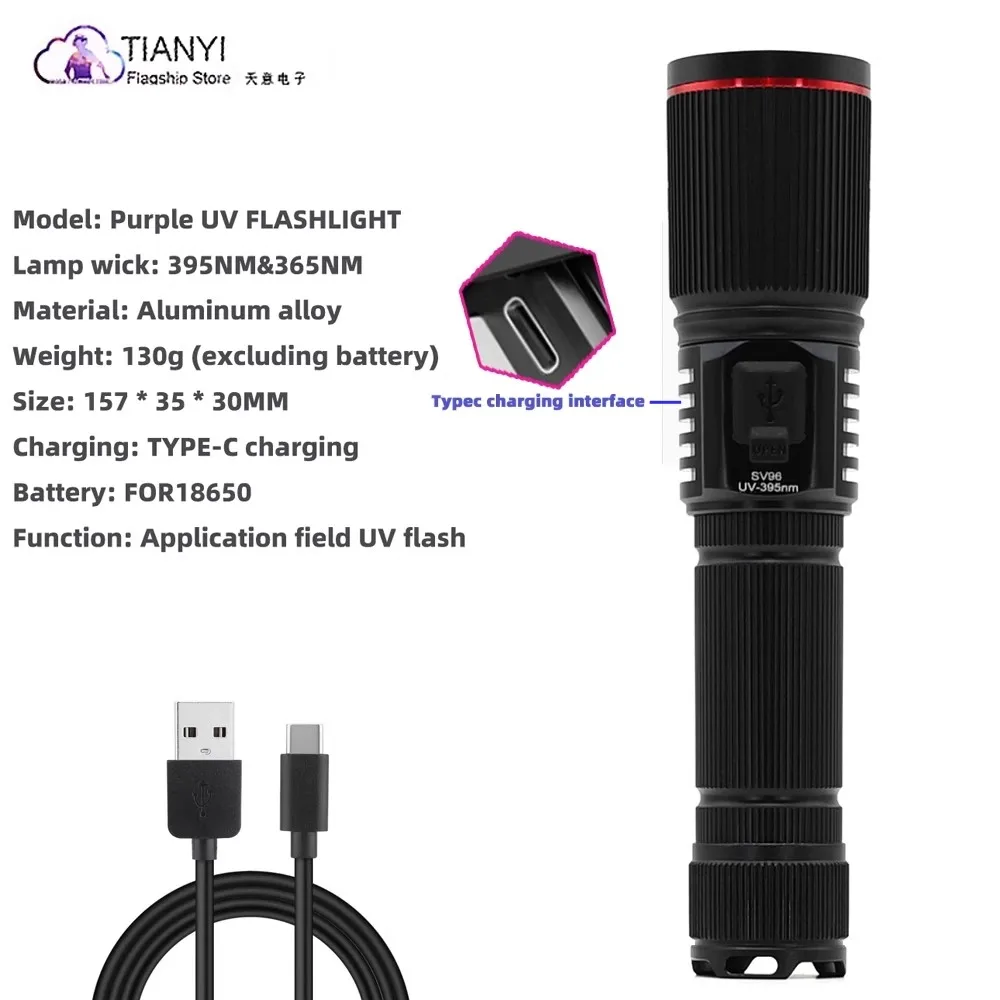 Zunigroup 365nm multifunción curado UV linterna anti-falsificación identificación enfoque ajustable impermeable fácil de llevar