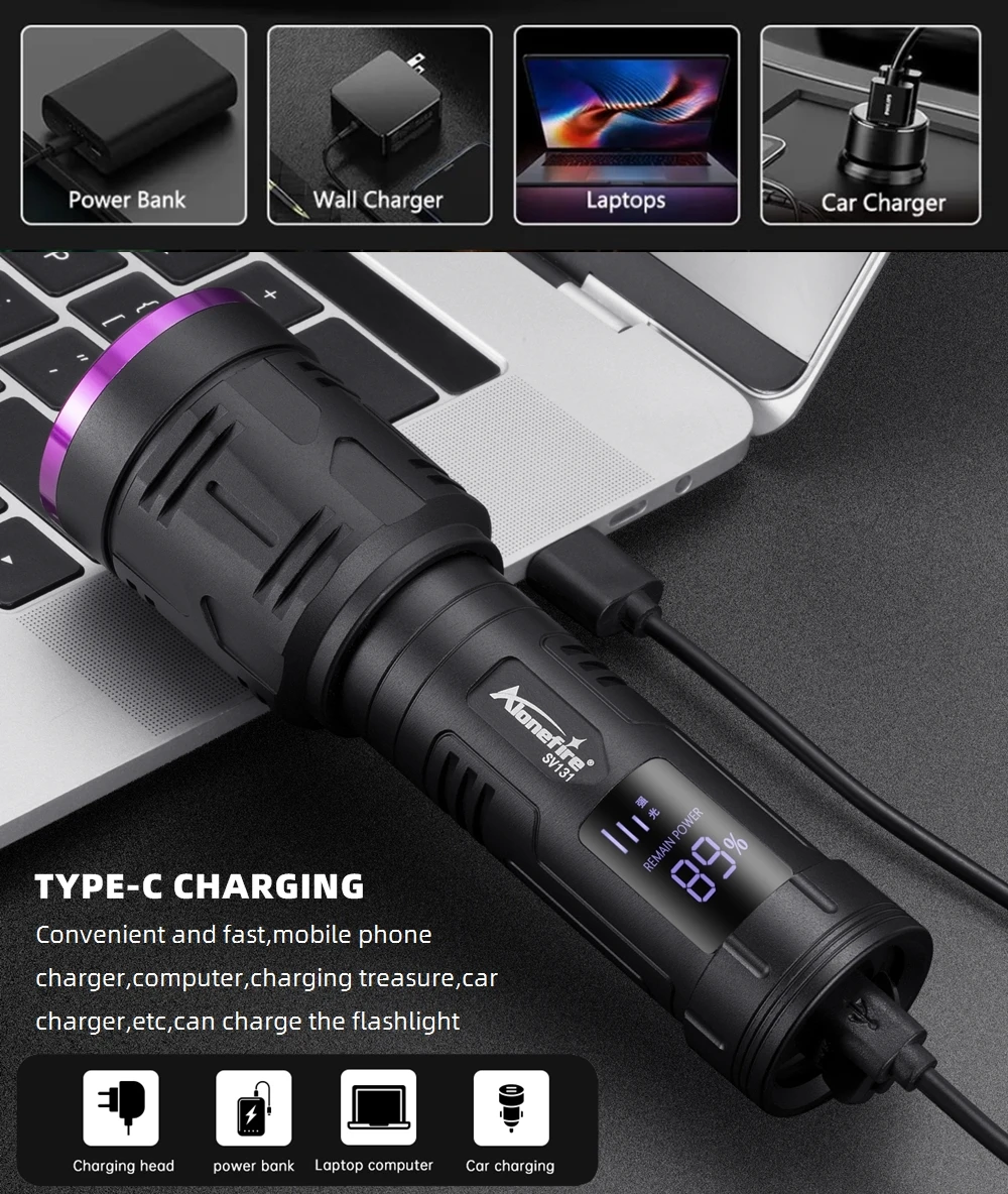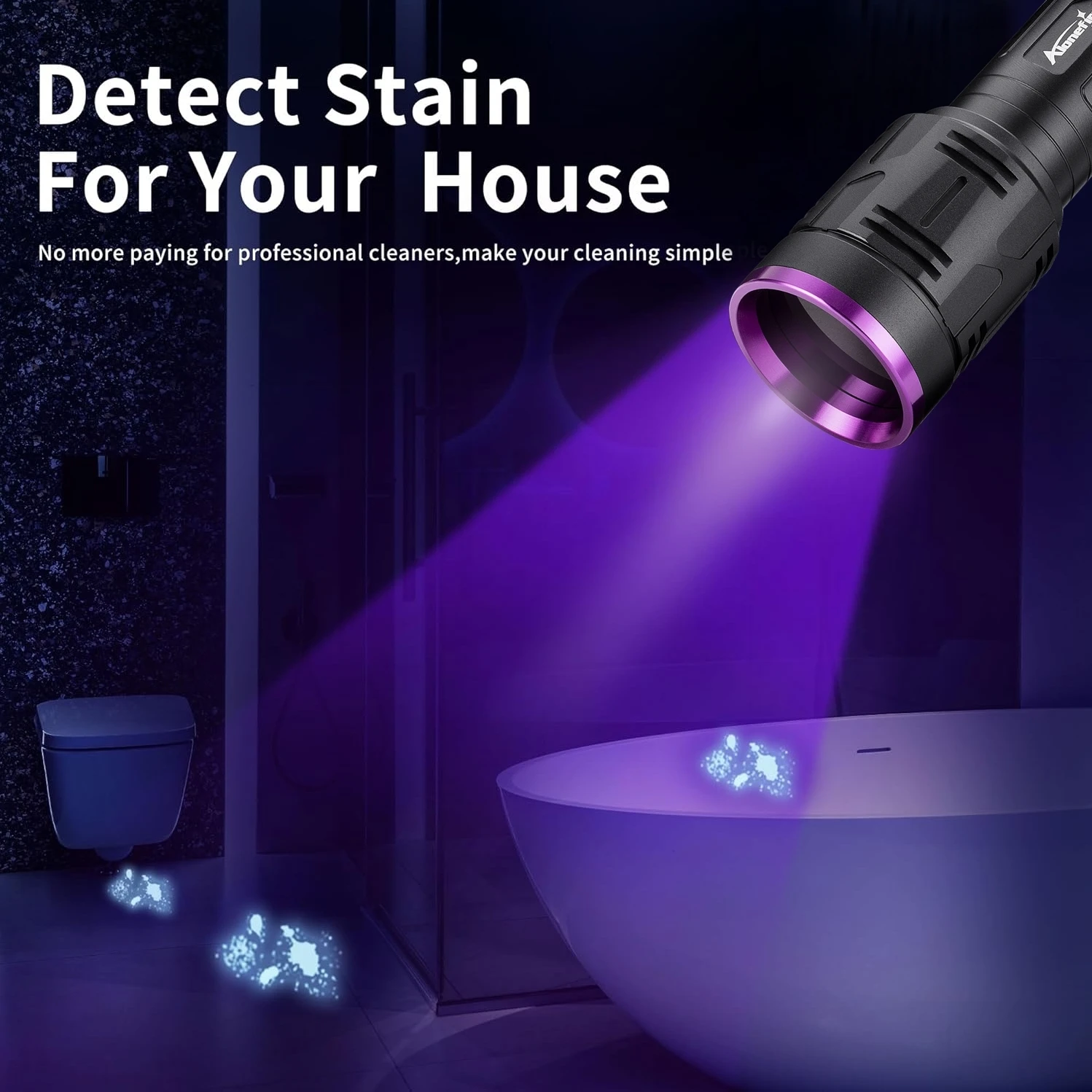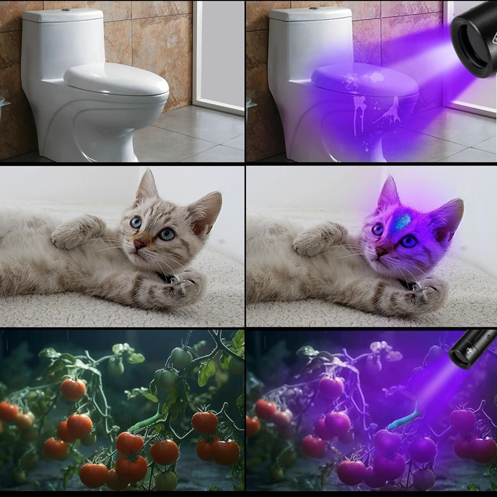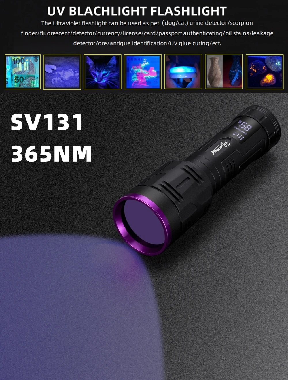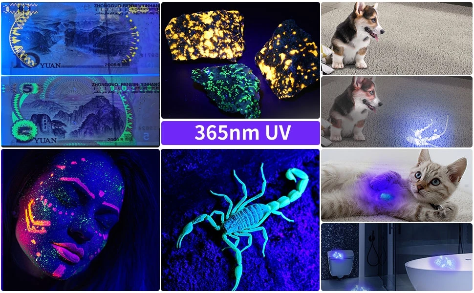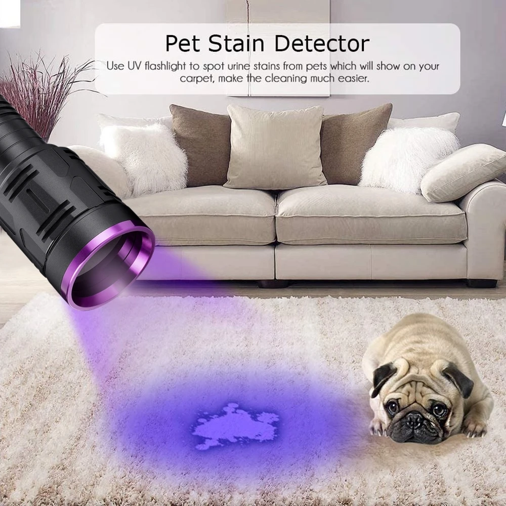 La linterna ultravioleta se puede utilizar como detector de orina para mascotas (perros/gato)/escorpión/autenticación de pasaporte/buscador/fluorescente/detector/moneda/licencia/tarjeta, etc.