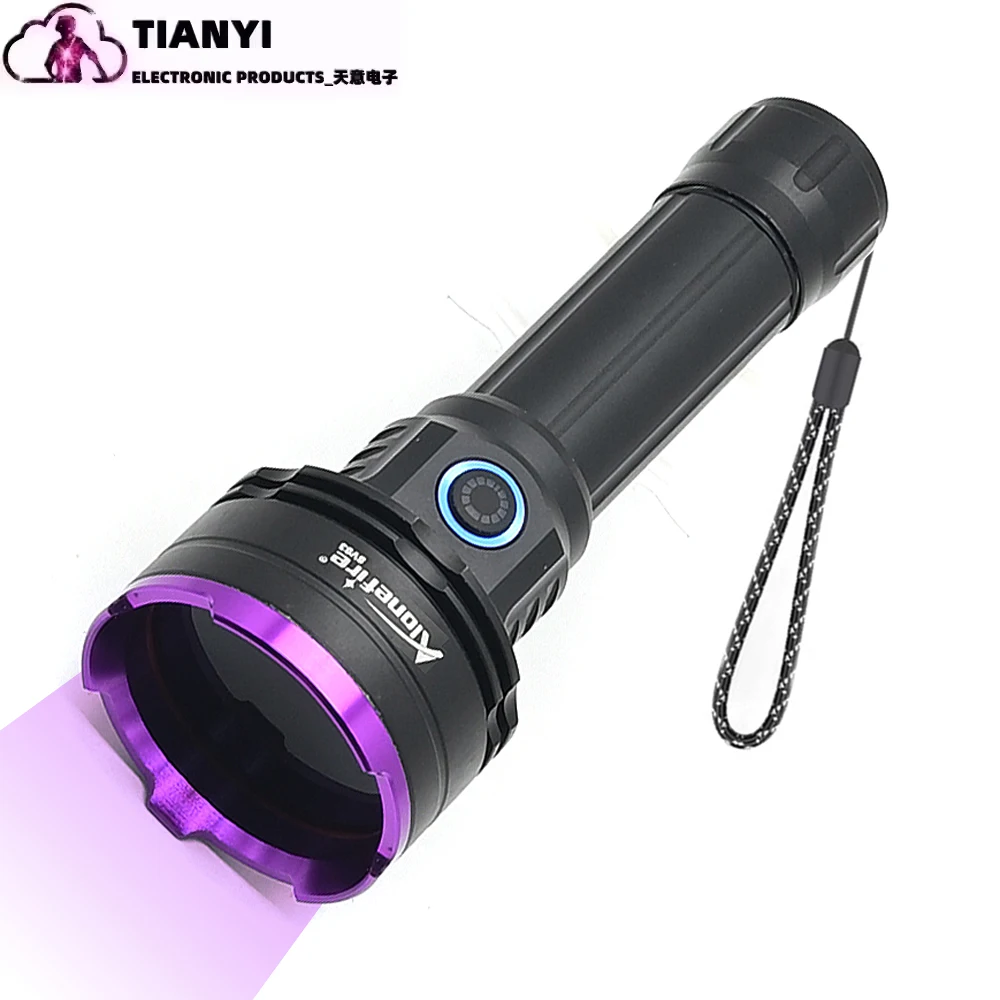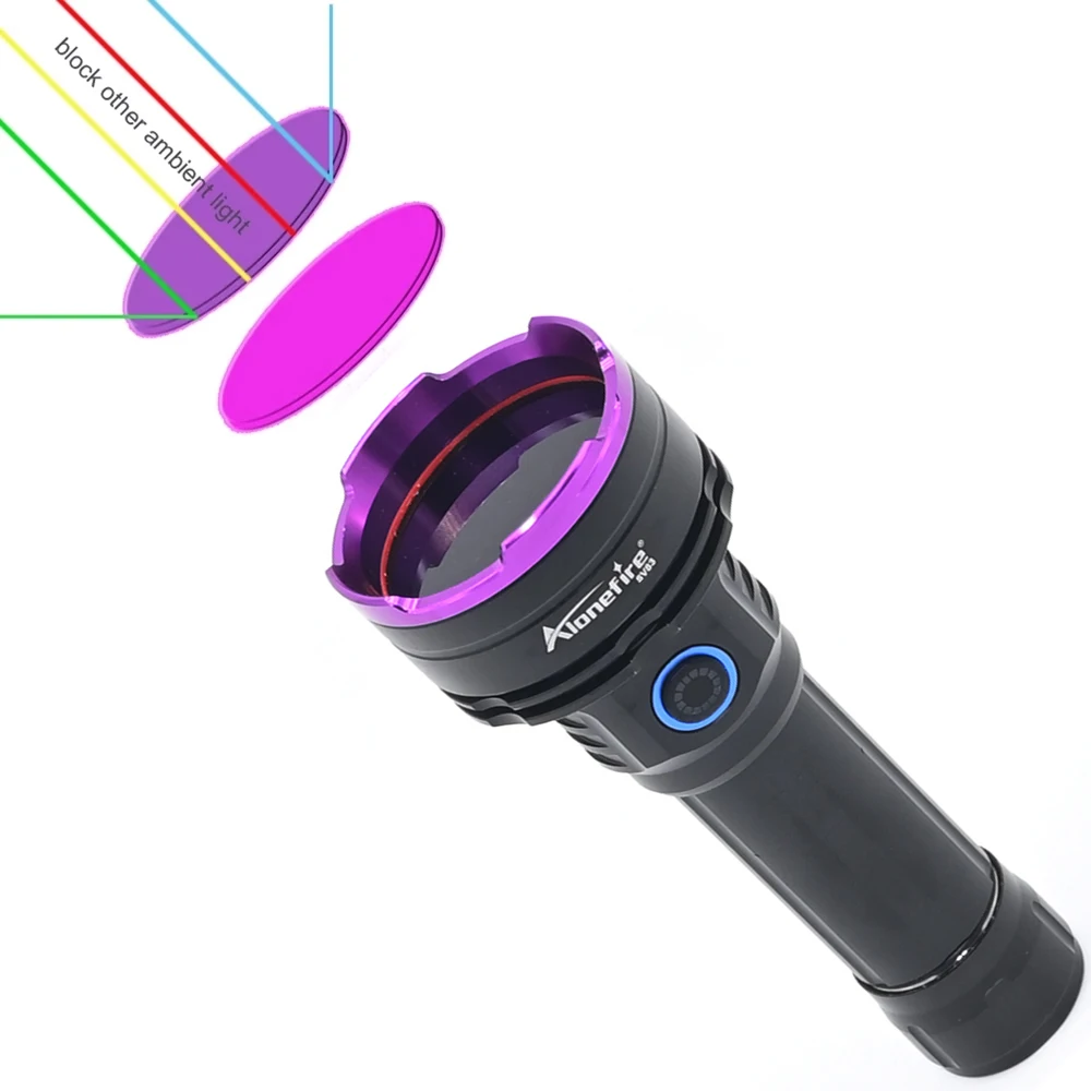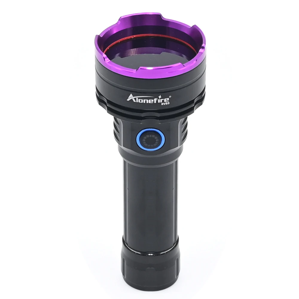 SV83 linterna púrpura de espejo negro de 3 luces de enfoque fijo de 365 nm utilizada para inspección de billetes, curado, decoración de uñas y agente fluorescente