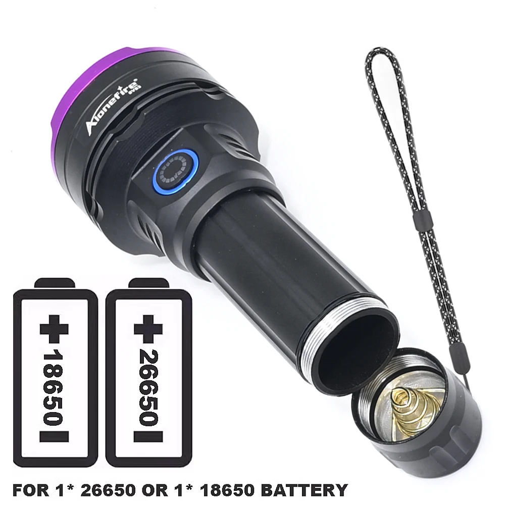 【ACTUALIZADO PARA EXCELER SUS NECESIDADES】-- Este es un foco de luz negra que integra alta pureza, alta intensidad y largo alcance.✔ Ultravioleta uv filtrado y puro de 365 nm, a diferencia de la luz ultravioleta normal de 365 sin filtrar.✔ 3 LED potente luz ultravioleta, con alta potencia de 36W y 1550mW de intensidad radiante.✔ Distancia del haz de más de 70 pies, encuentre fácilmente lo que está buscando (no es necesario acercarse demasiado ni ponerse en cuclillas).Viene con DOS baterías recargables (con placa protectora, duración de la batería de 3 horas).