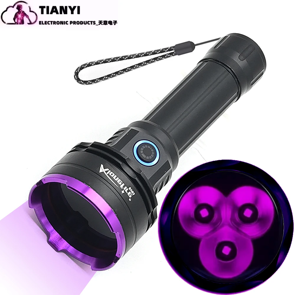 SV83 linterna púrpura de espejo negro de 3 luces de enfoque fijo de 365 nm utilizada para inspección de billetes, curado, decoración de uñas y agente fluorescente
