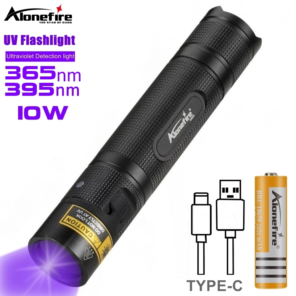 Parámetros del productoConsejos: se puede seleccionar la potencia del producto: 3W / 5W / 10W. Díganos cuál necesita.Descripción del producto:Marca: AloneFireModelo del producto: SV005Bombilla: 365NM/395NM UV LEDMaterial: aleación de aluminio duradera, disipación de calor adecuadaLongitud de onda de luz púrpura: 365NM/395NMPotencia de luz púrpura: 10WConsumo de energía de luz púrpura: 3W:800MW / 5W:1200MW / 10W:2400MWModo: 1 modo (apagado-encendido)Batería: para 1 batería de litio recargable 18650. Dimensiones: 122mm/4,80 pulgadas (largo) x 24mm/0,94 pulgadas (cabeza) x 24mm 0,94 pulgadas (diámetro)Peso: 67g/0,175LbÁrea de aplicación:Linterna UV de 365nm:La luz ultravioleta de 365nm es invisible a simple vista, por lo que no es tan BRILLANTE como la linterna de 395nm, pero es perfecta para la detección de alta demanda como agentes fluorescentes y código de seguridad. 365nm UV es el verdadero espectro de detección dedicado. Se puede utilizar con luz natural y funciona mejor en la oscuridad con poca fuga de luz visible.Se puede utilizar como detector de orina de mascotas (perro/gato)/escorpión/buscador/fluorescente/detector/moneda/licencia/tarjeta/Autenticación de pasaporte/manchas de aceite/detector de fugas/Mineral, etc.(¡En ambientes oscuros, el efecto de detección de luz púrpura UV es mejor!)