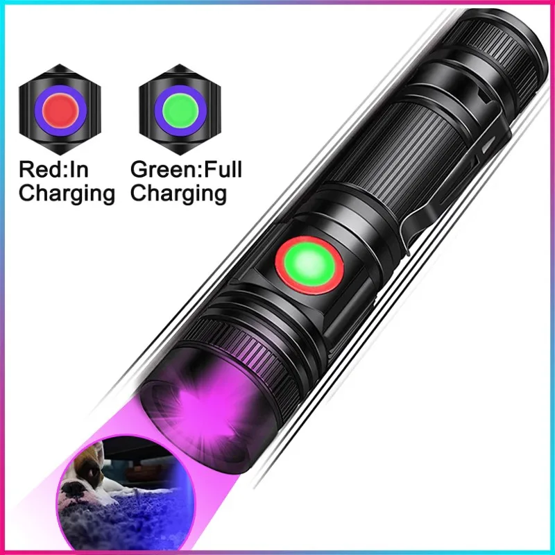 ★【MINI LUZ ULTRAVIOLETA IMPERMEABLE】 -- Lo suficientemente pequeño y ligero para una operación con una sola mano. Viene con un clip de montaje, coloque fácilmente la linterna UV en el bolsillo, la mochila, la caja de herramientas, su automóvil o junto al sofá, pero sin miedo a perder. Funciona bien al señalar las manchas ocultas de todo tipo de superficies en la sala de estar, la cocina, el baño, el dormitorio, el garaje y su automóvil en cualquier momento. Resistente al agua IPX4, no necesita preocuparse por las condiciones húmedas como las gotas de agua.