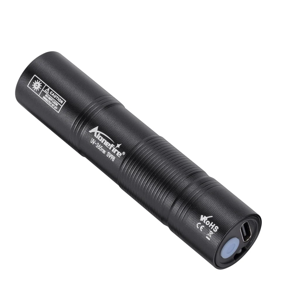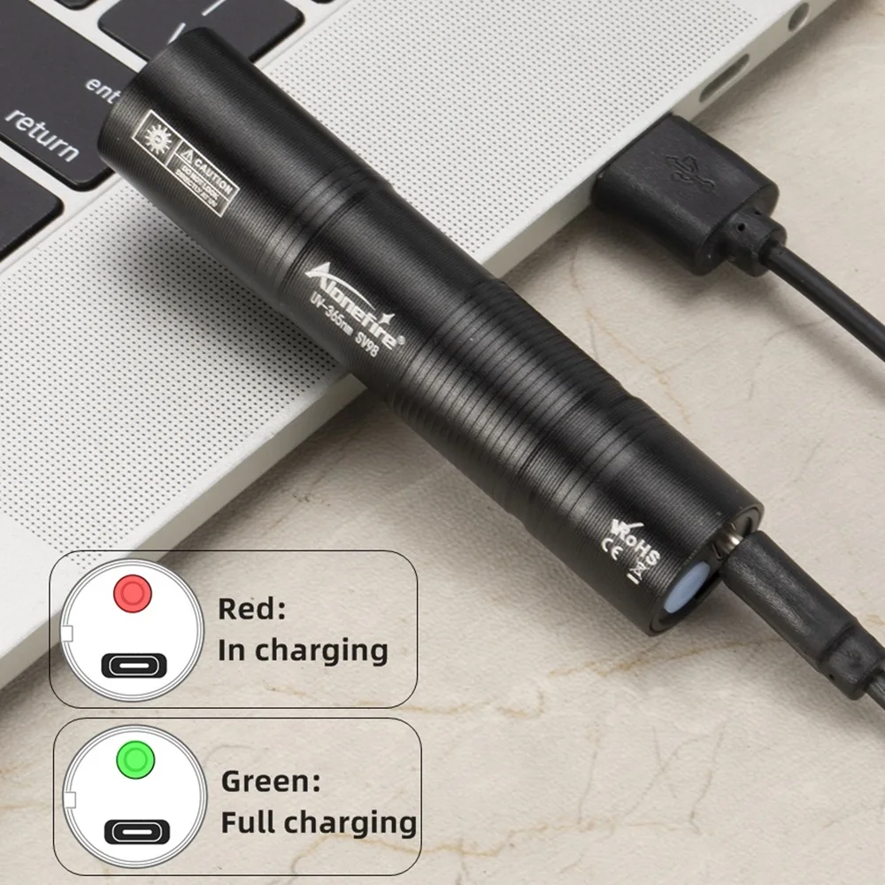 Excelente luz UV. Pequeña, compacta y potente. Excelente para hacer brillar cosas que reaccionan a este espectro, como alacranes, líquenes y pinturas fosforescentes. Tiene puerto tipo C y batería recargable. Hasta ahora no me la he terminado. 100% recomendado.