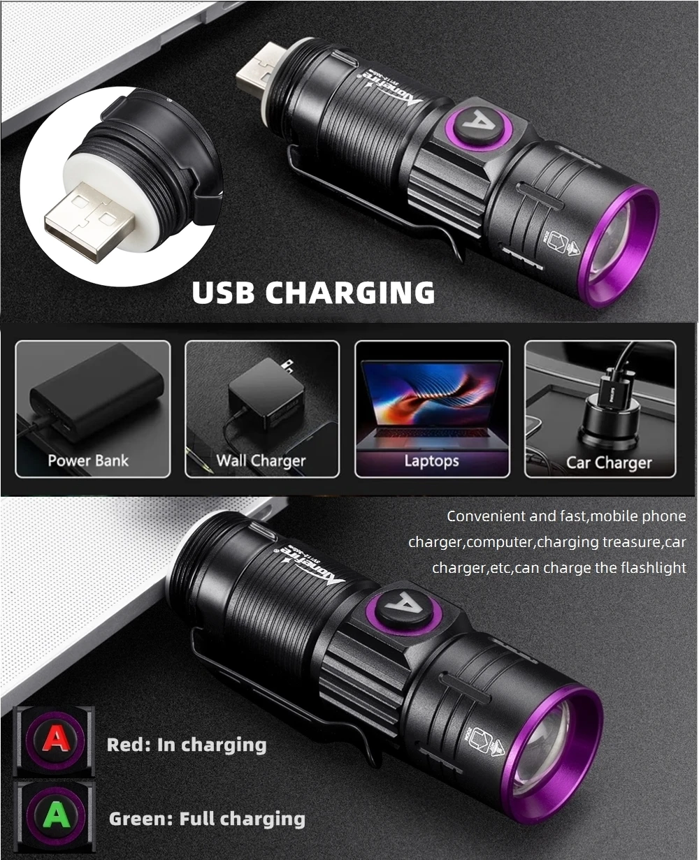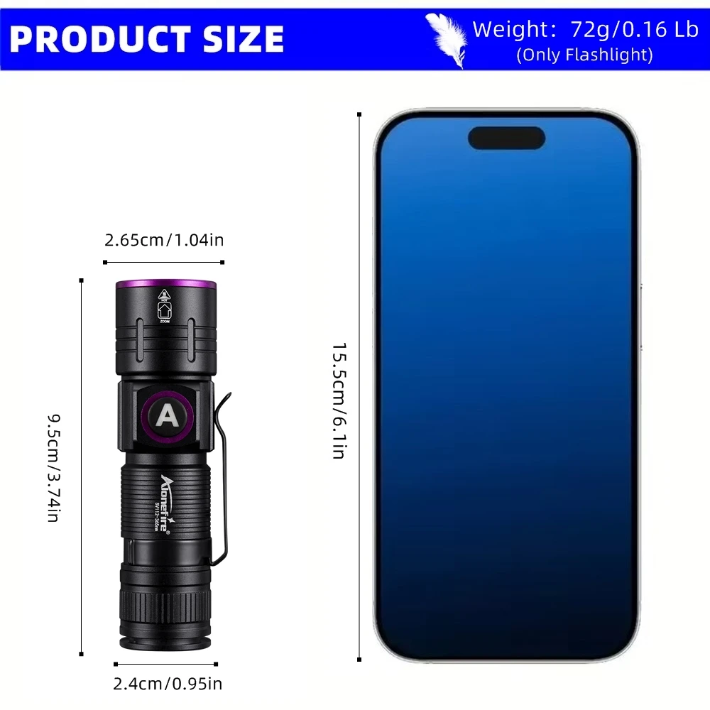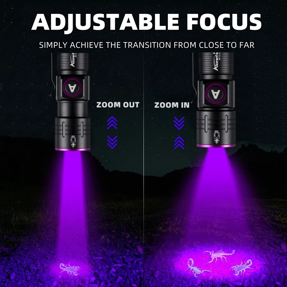 La linterna ultravioleta se puede utilizar como detector de orina para mascotas (perros/gato)/escorpión/autenticación de pasaporte/buscador/fluorescente/detector/moneda/licencia/tarjeta, etc. (En un ambiente oscuro, ¡el efecto de detección de luz violeta UV es mejor!)