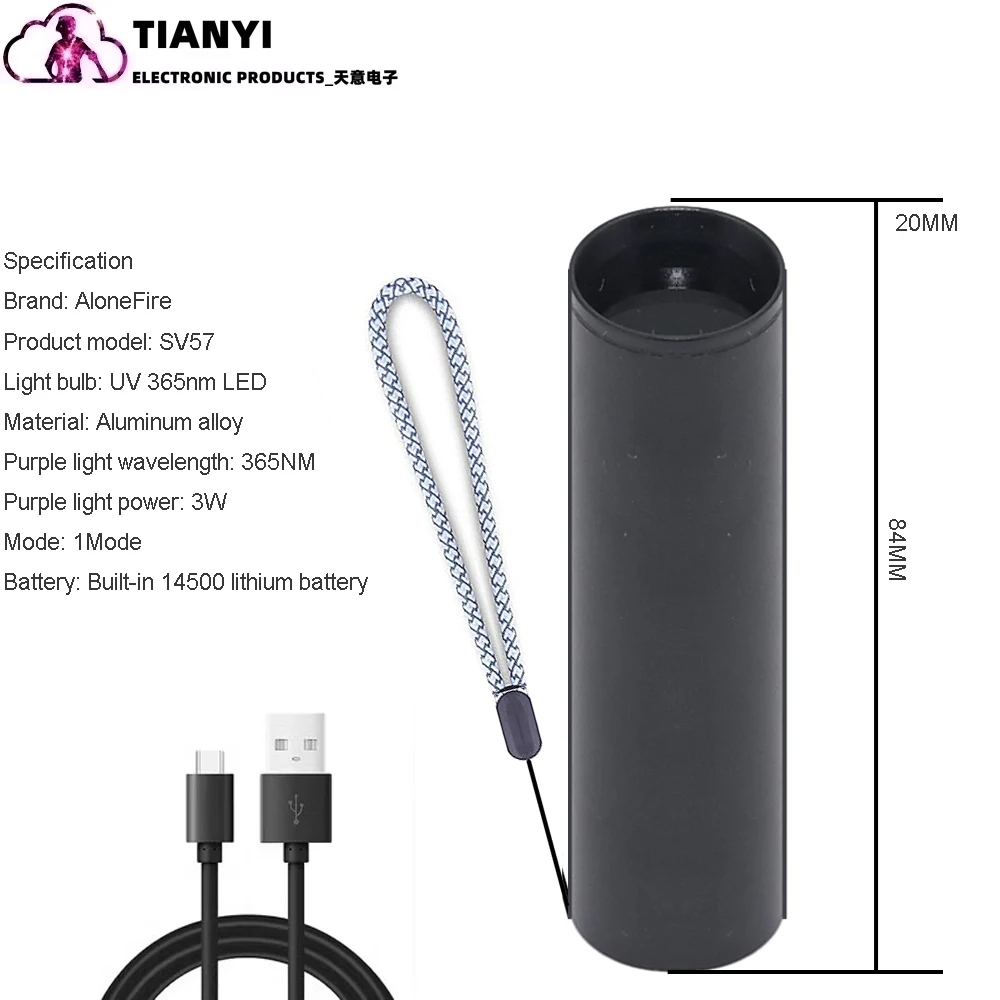 Linterna UV de 3W y 365nm, linterna ultravioleta recargable por USB para mascotas, orina, gato, tiña, dinero, mineralo, detección de escorpión, luz negra SV57