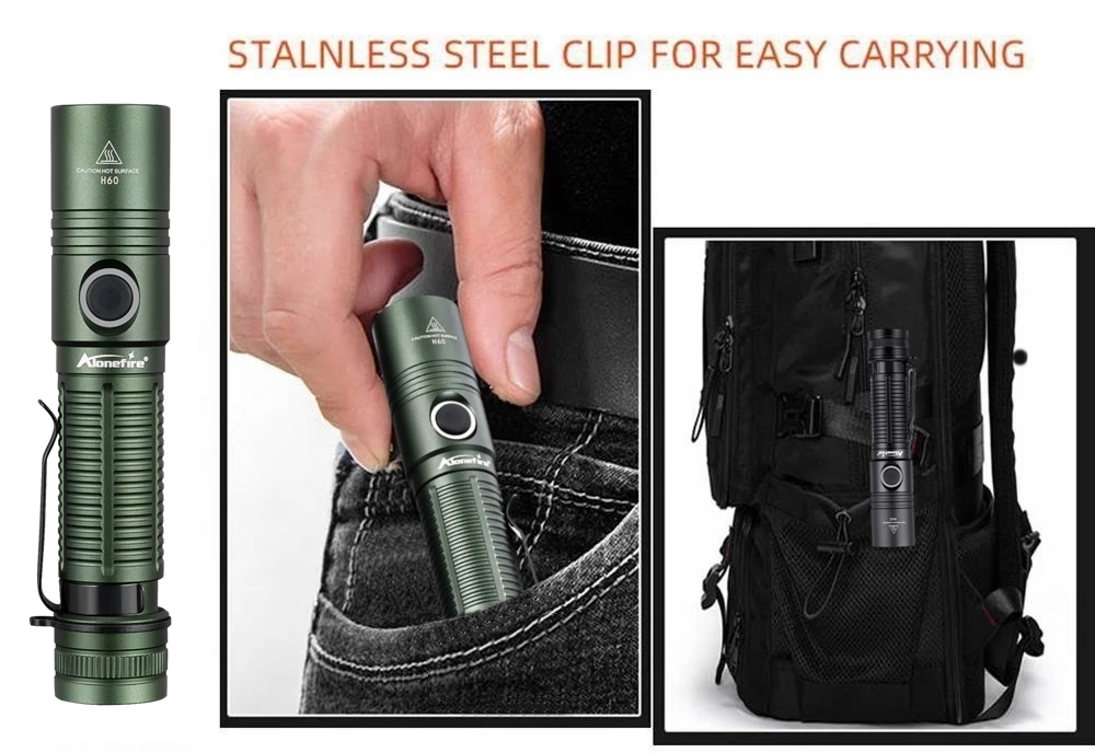 Las linternas LED de alonefire, todas juntas, son excelentes linternas, son brillantes y hacen zoom y la mayoría de ellas, casi todas, son resistentes al agua y son una mierda. Compré varias de estas y todavía compraré más de alonefire hasta que dejen de venderlas. Tengo un nebo y estas linternas alonfire les dan una buena pelea, son linternas absolutamente geniales, las recomiendo