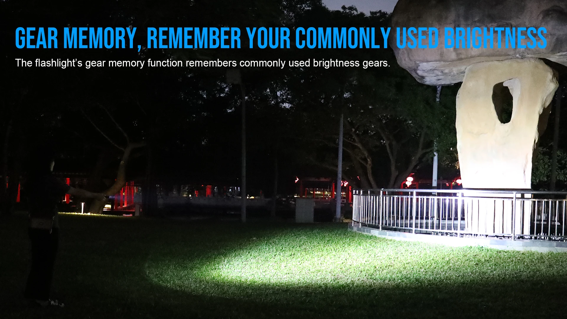 La función de memoria de engranajes de la linterna recuerda engranajes de brillo de uso común