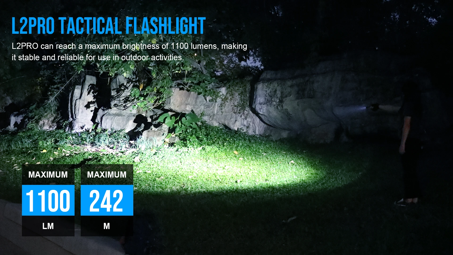 L2PRO puede alcanzar un brillo máximo de 1100 lúmenes, lo que lo hace estable y confiable para su uso en actividades al aire libre