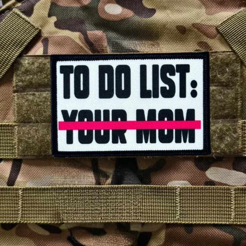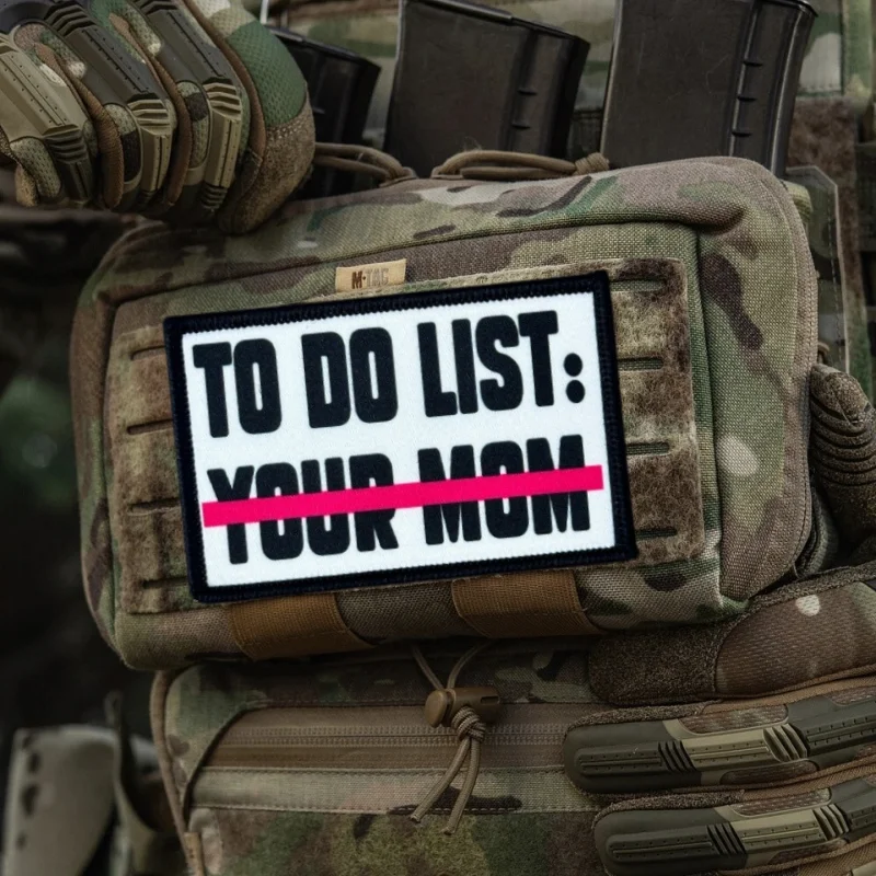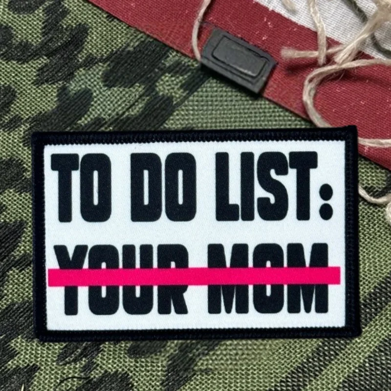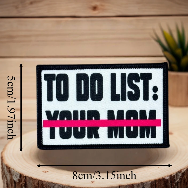 Lista de tareas pendientes: Parche estampado de tu mamá Chaleco táctico Gancho y bucle Sombrero Insignia de moral Mochila Pegatinas Parches para brazalete para ropa