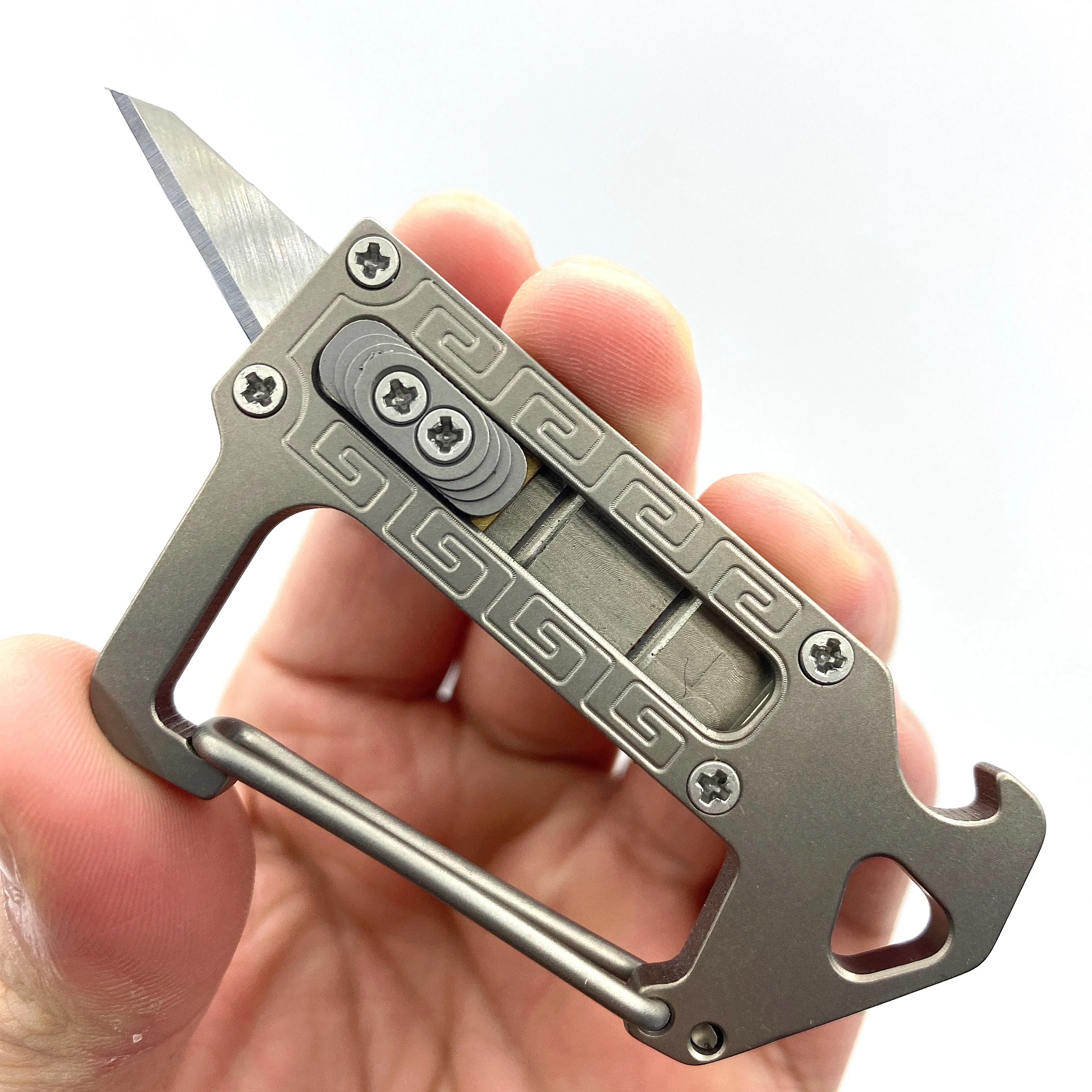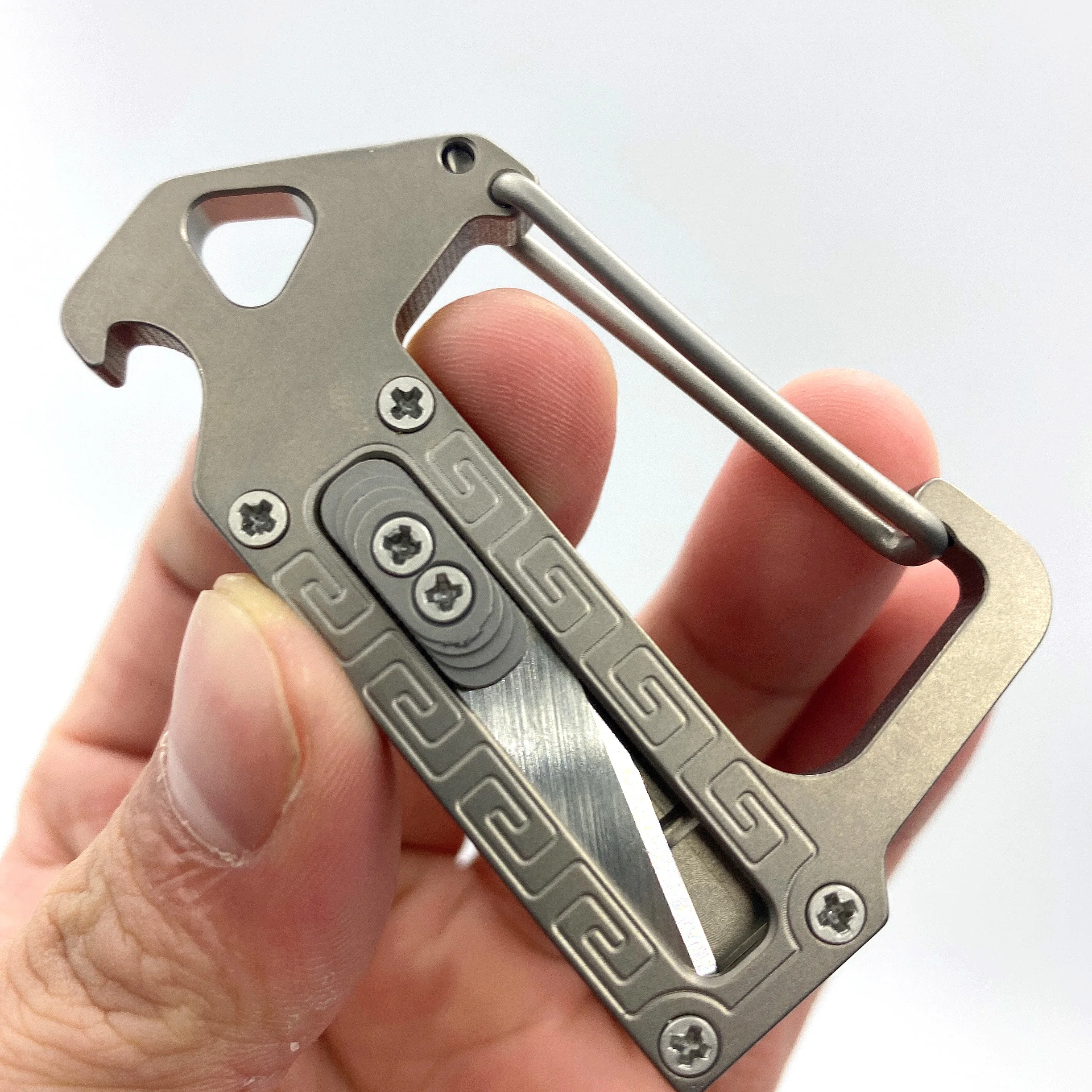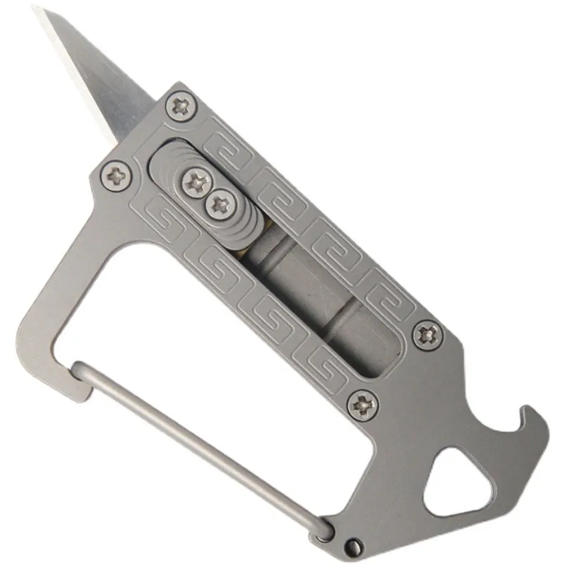 LLavero de aleación de titanio, Mini cuchillo, mosquetón para exteriores con abrebotellas Edc, dispositivo portátil multifuncional