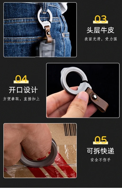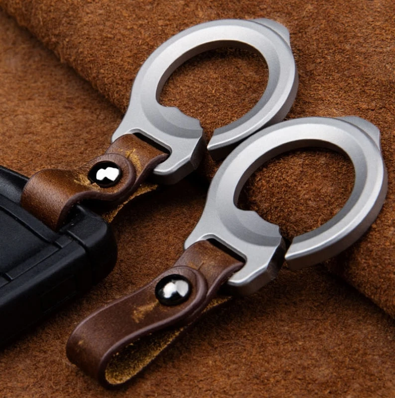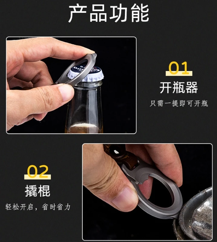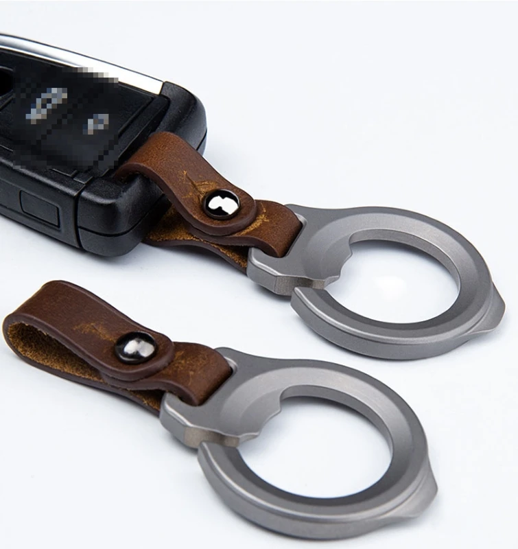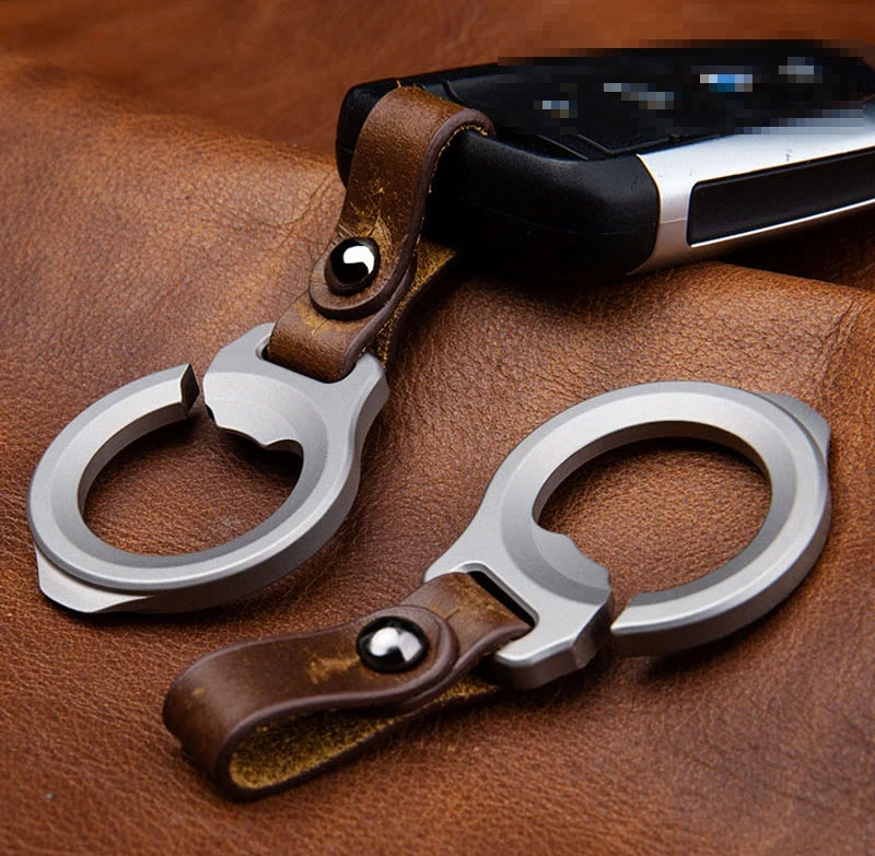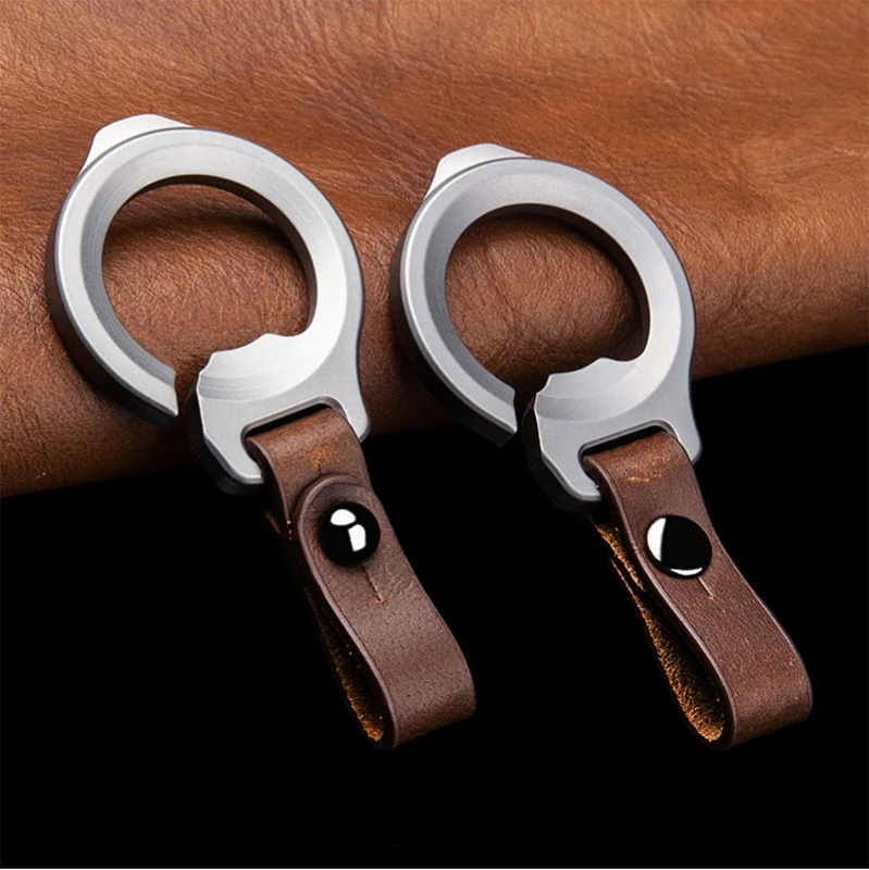 LLavero de aleación de titanio y cuero EDC, Abrebotellas de barra de palanca multifuncional