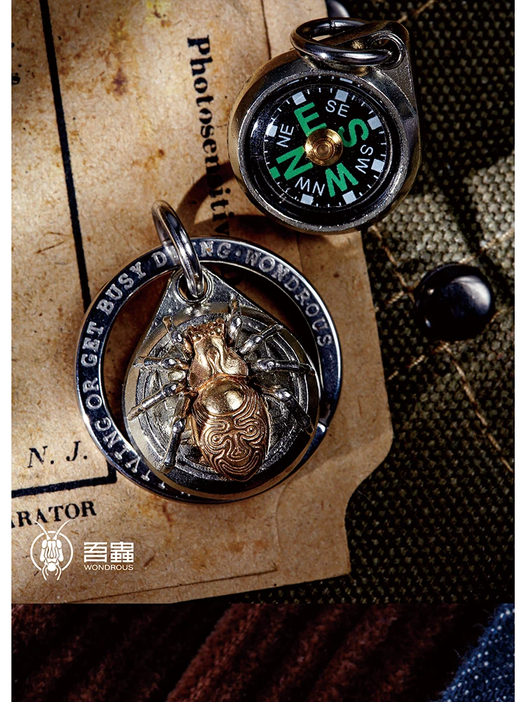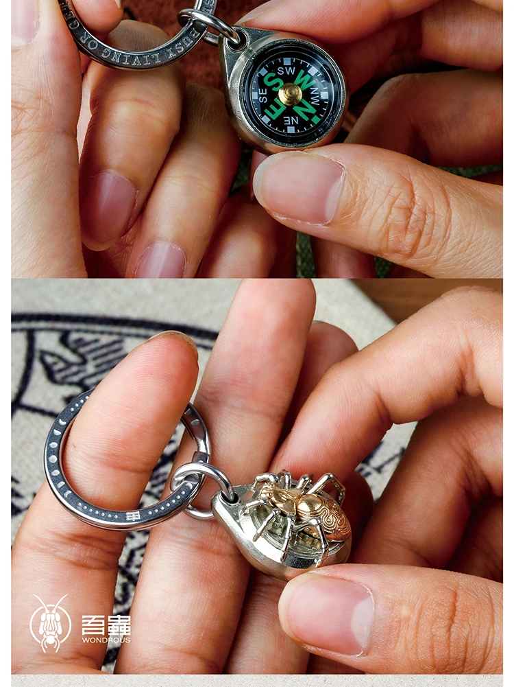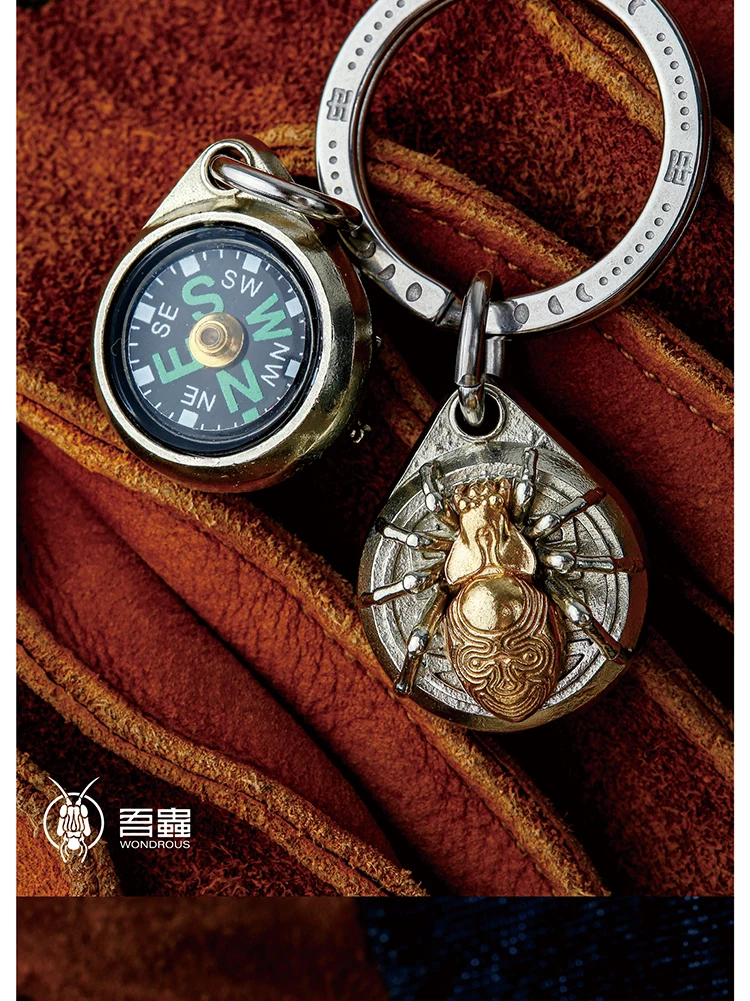 Llavero colgante de Metal con brújula de araña para coche, accesorios de viaje, artículos al aire libre, Regalos divertidos