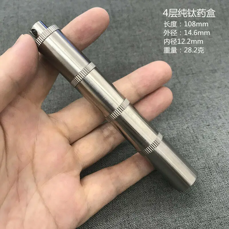 Llavero colgante de titanio multicapa, contenedor impermeable, caja de medicina, pastillero