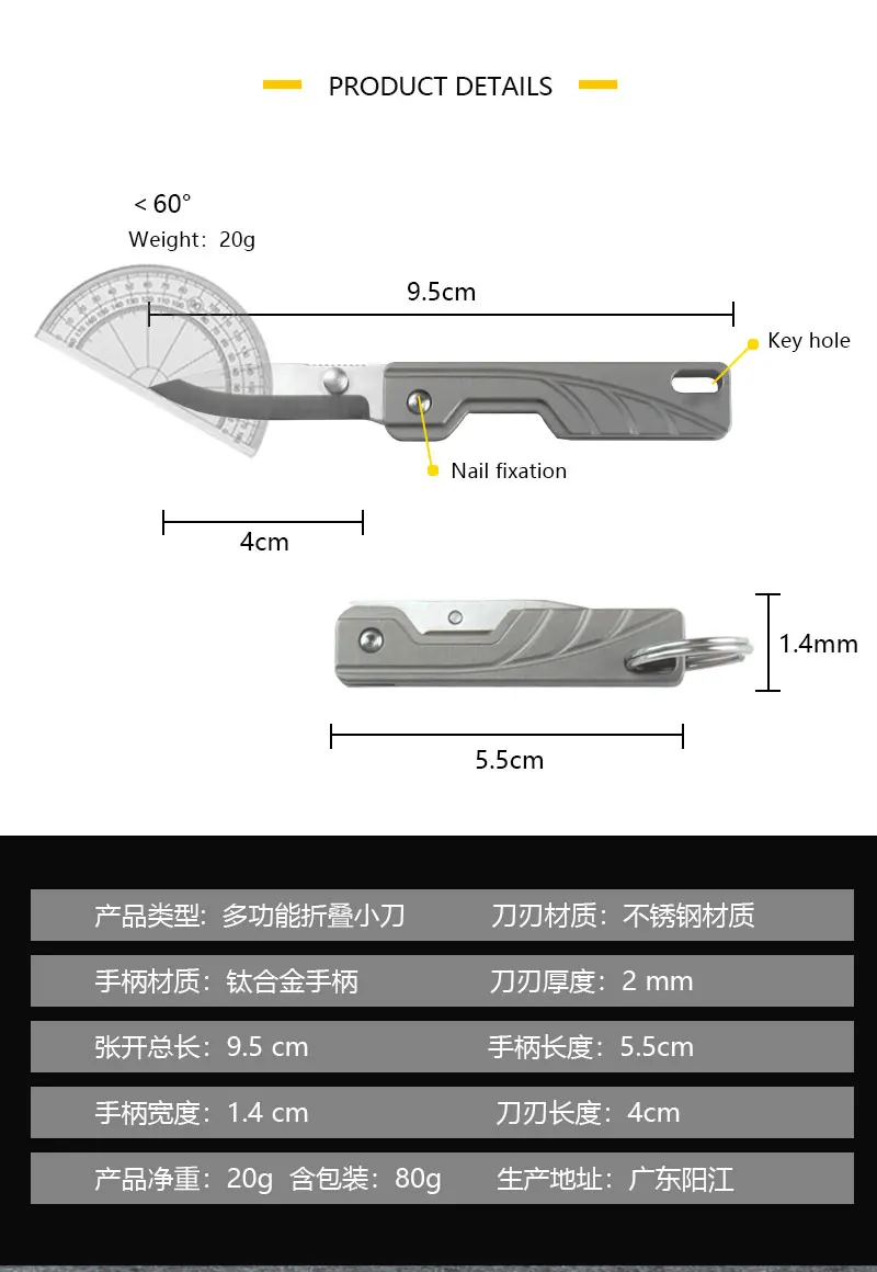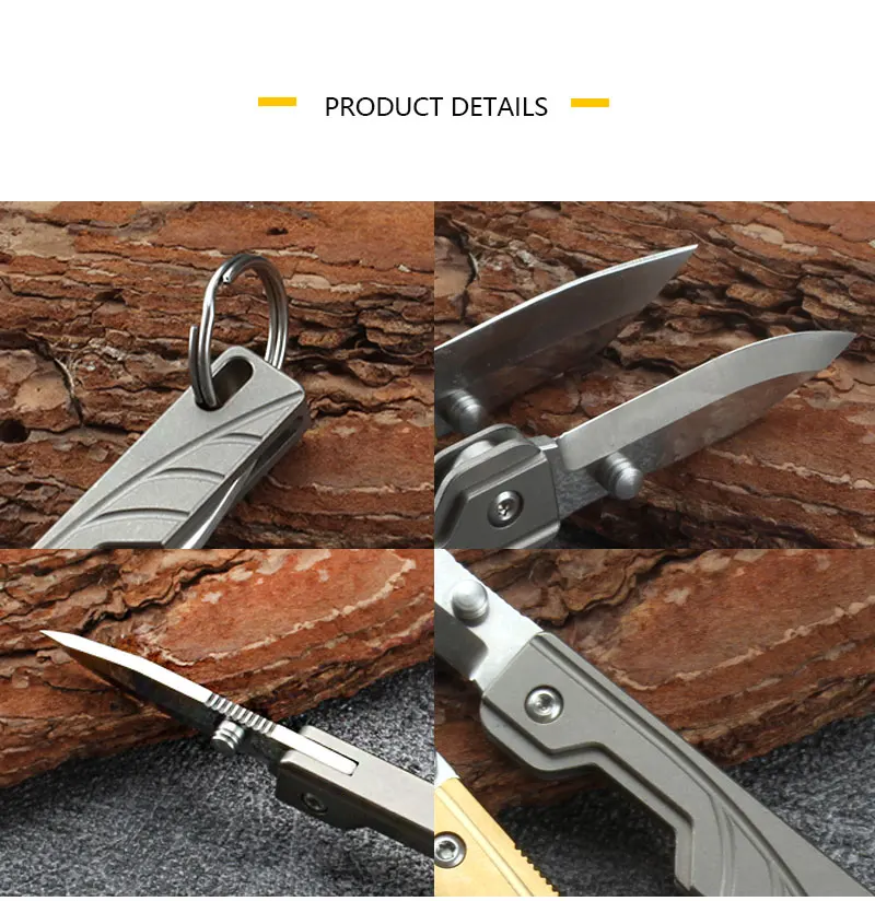 LLavero de cuchillo plegable de aleación de titanio para exteriores, cuchillo de fruta de autodefensa portátil afilado, cuchillo de camping expreso de demolición