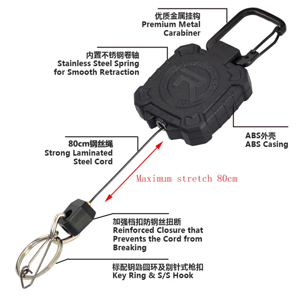 Material: carcasa de ABS, cuerda telescópica de acero inoxidable, gancho de hardware, gancho y anillo de acero inoxidable