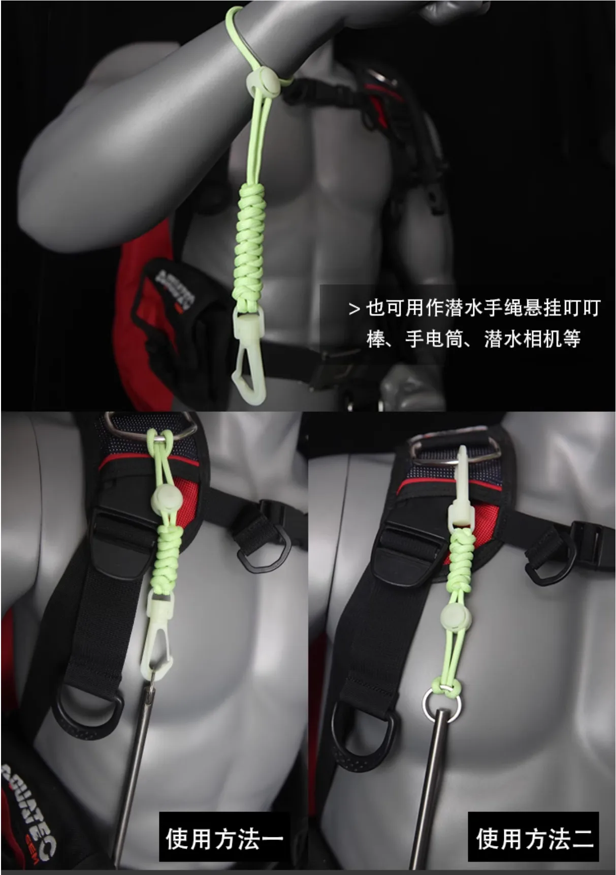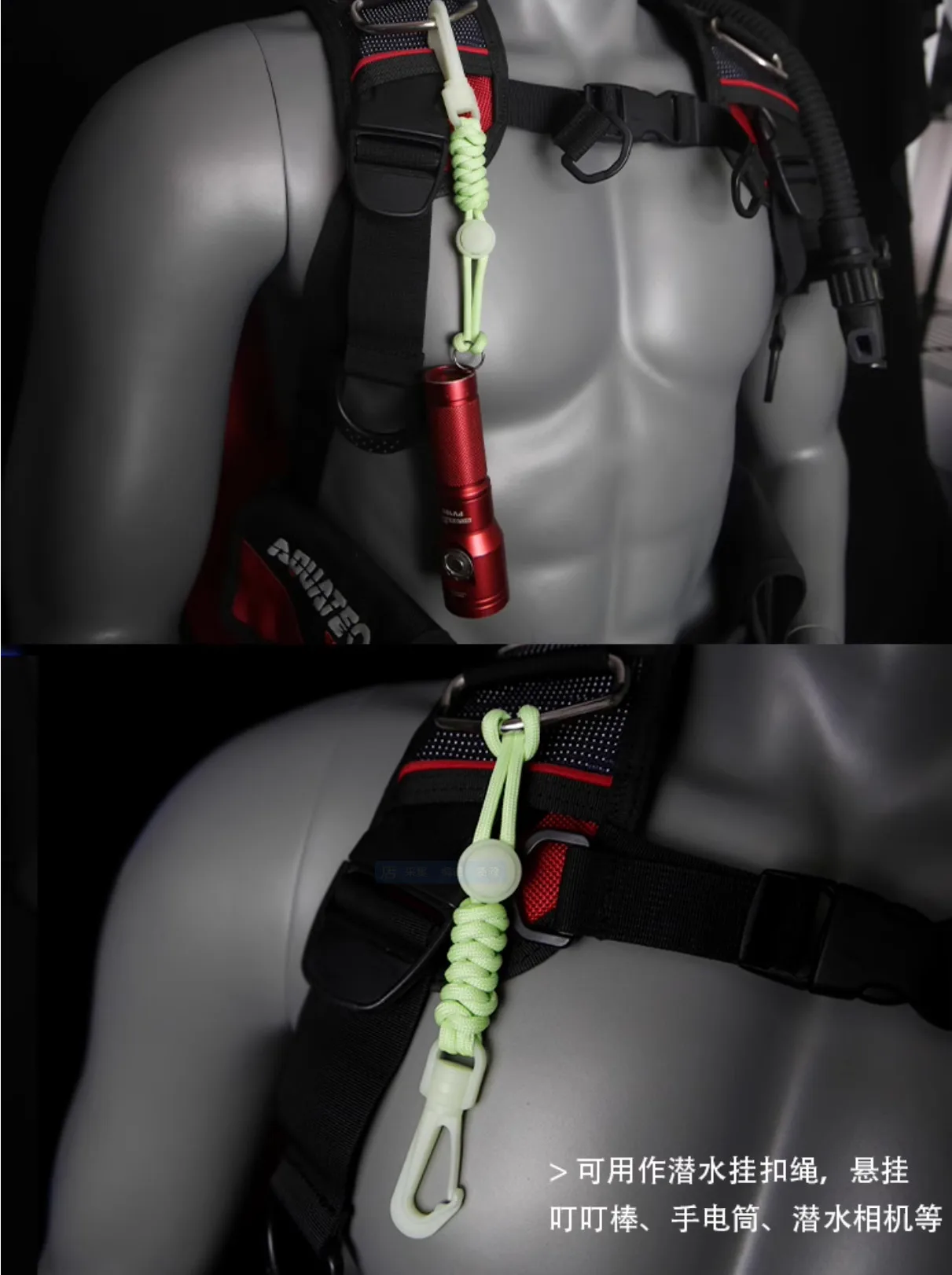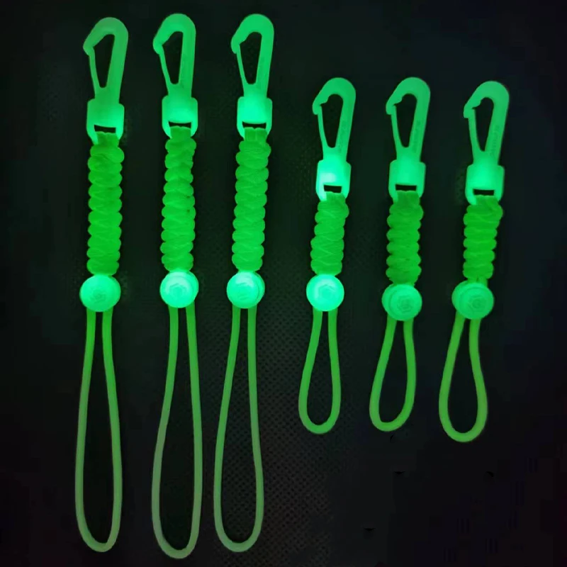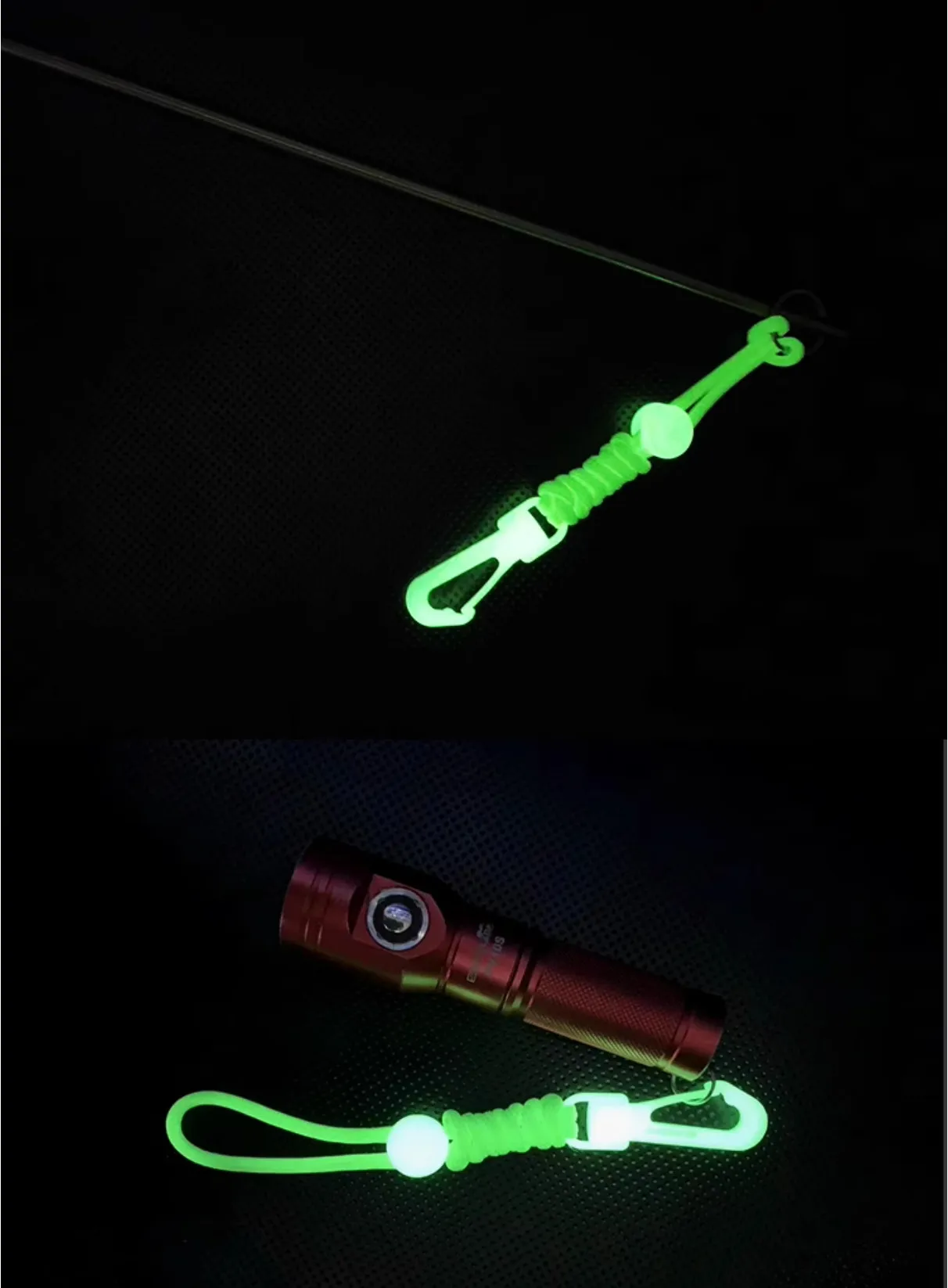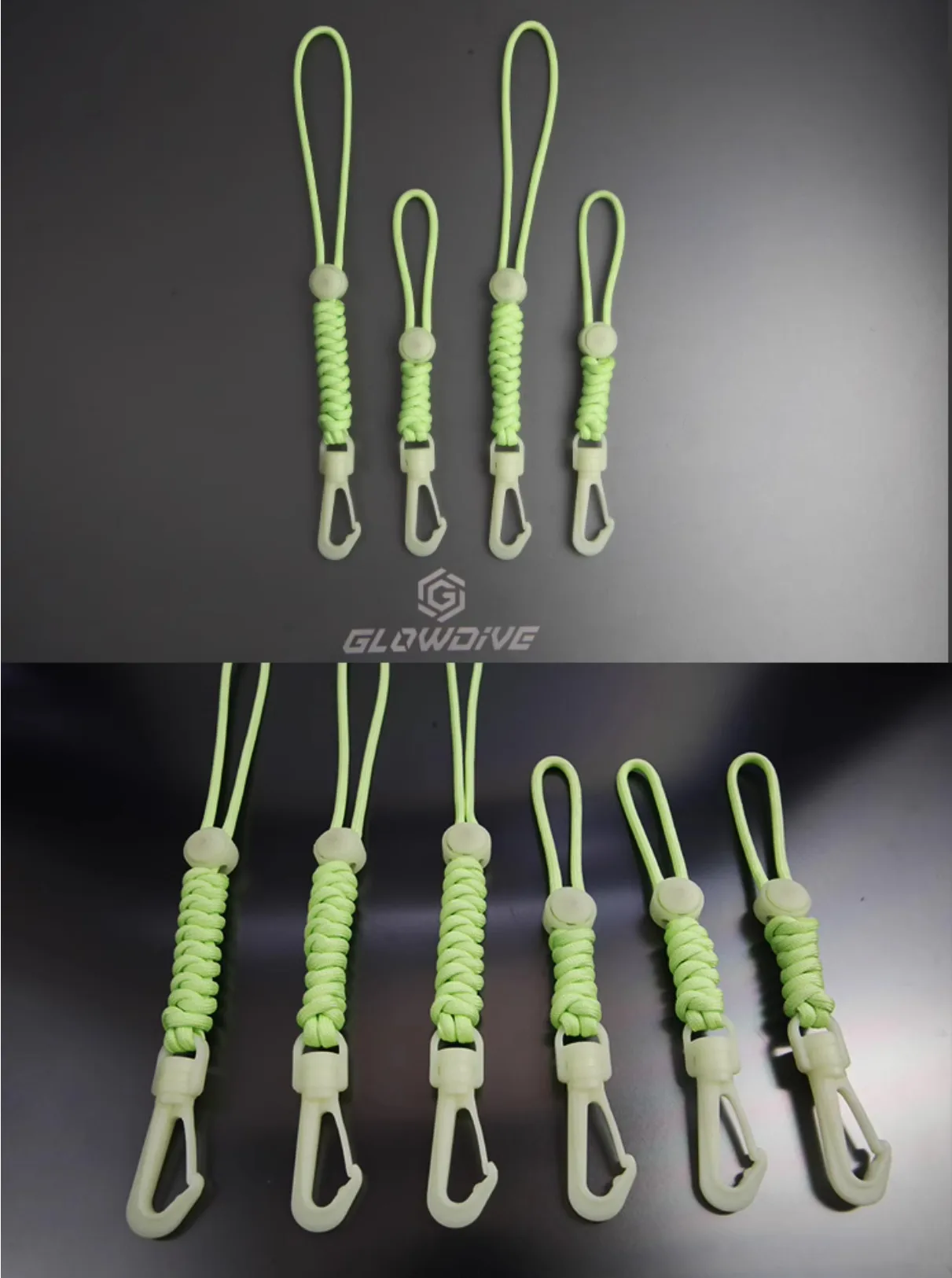 Tamaño grande: longitud 275mm, ancho 21mm Tamaño pequeño: longitud 190mm, ancho 21mm Material: acero inoxidable PA6/304 (Núcleo de resorte) Peso: 14g/11g Ámbito de aplicación: se puede utilizar como llavero, cuerda de linterna, cuerda de botella de agua, cuerda de herramientas, etc., para conectar cinturones o bolsas. Con efecto luminoso, se puede distinguir claramente en la oscuridad.