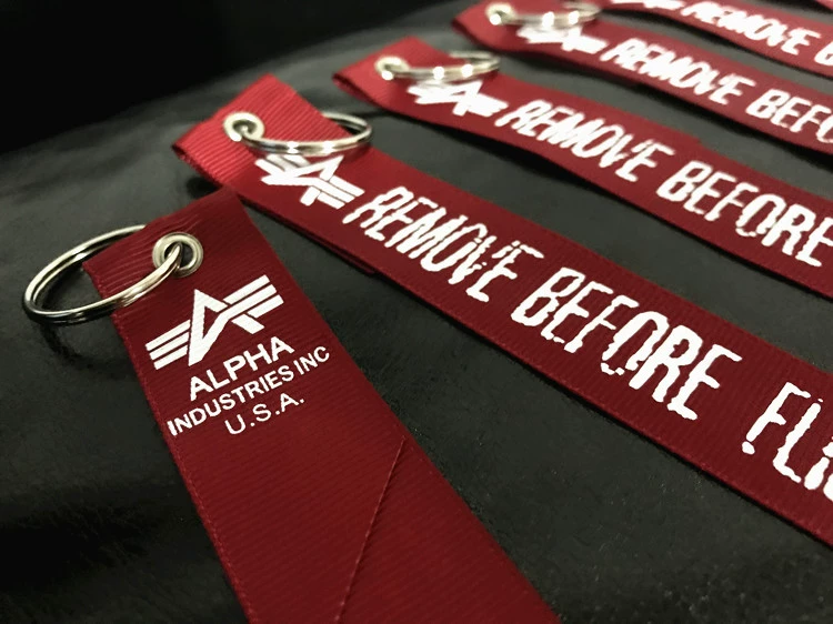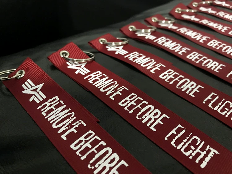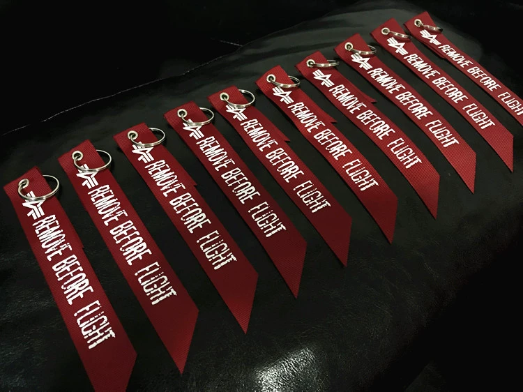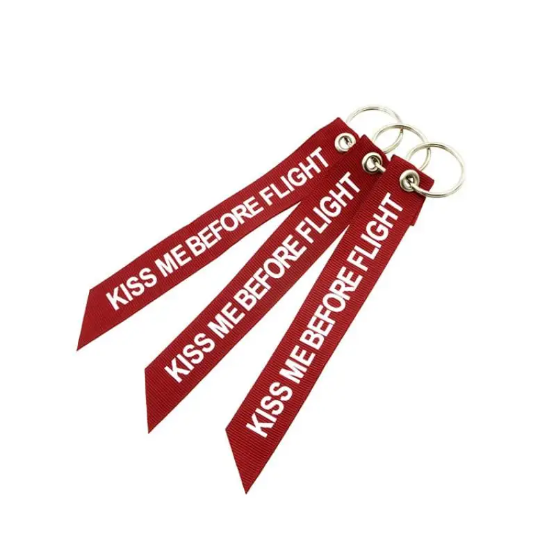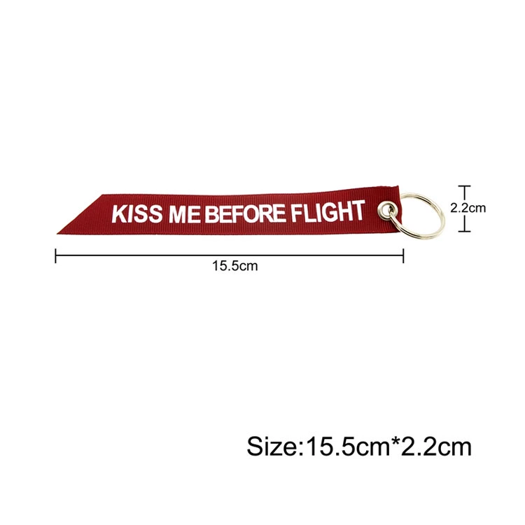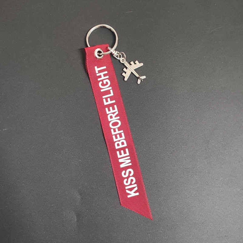 LLavero de etiqueta de equipaje con cinta roja KISS ME BEFORE FLIGHT Assistant colgante