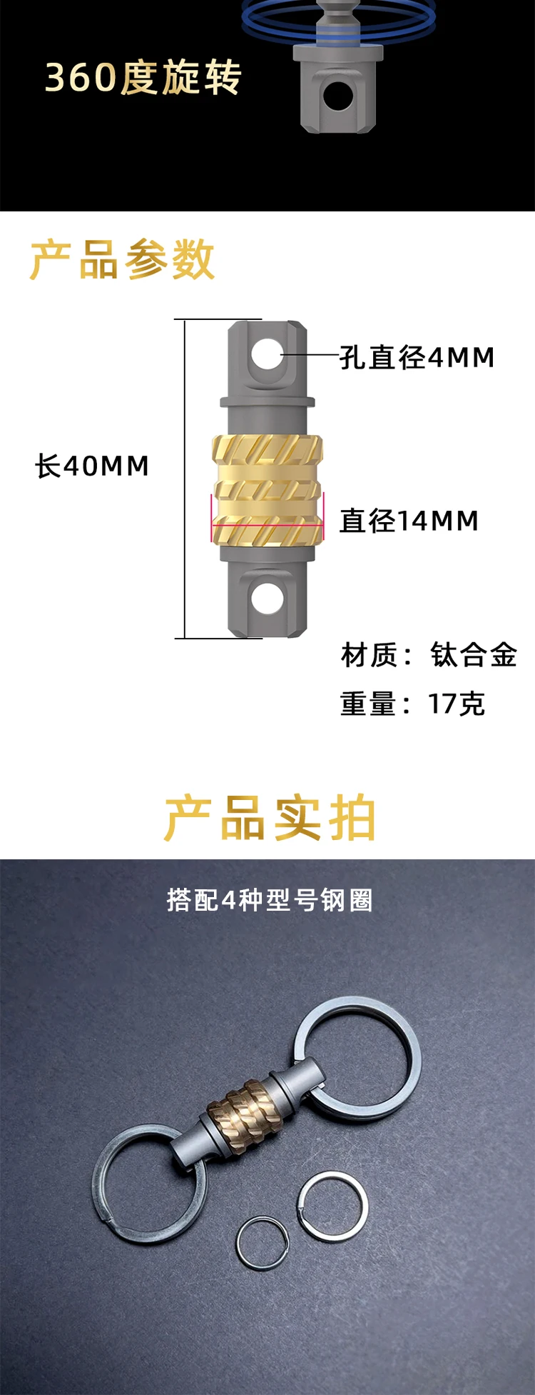 LLavero de Extracción rápida de aleación de titanio para hombre, colgante antipérdida de rotación de 360 grados, Edc auténtico, para motocicleta y coche