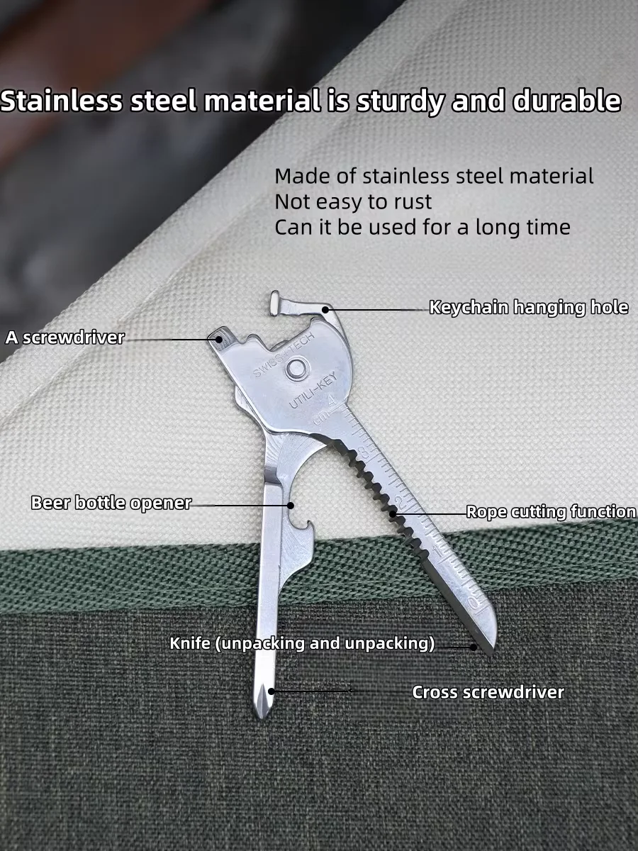 Llavero multifuncional para exteriores, 6 en 1 herramienta multifuncional, mini cuchillo plegable, herramienta de hardware, creatividad