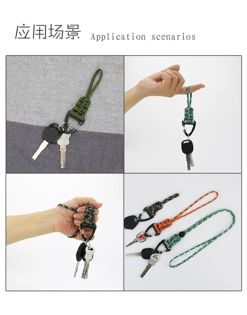 Nombre: llavero de cuerda de paraguas tejida a mano. Tamaño: longitud 12CM/22CM/46CM. Productos manuales con un error de 1-2cm de longitud. Introducción: llavero hecho a mano de cuerda de paraguas de siete núcleos de alta calidad. Aplicación: llavero, cuerda para colgar cuchillos, cuerda para linterna, etc. El paquete incluye: 1 piezas