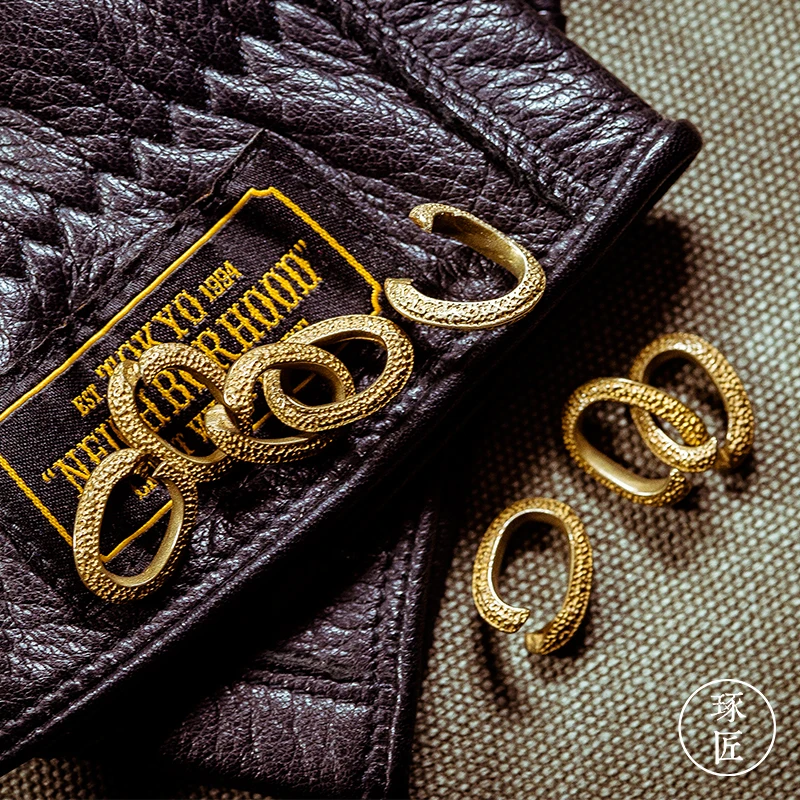 Llavero con patrón de meteorito de latón puro hecho a mano, Aramco caqui Vintage, anillo de apertura