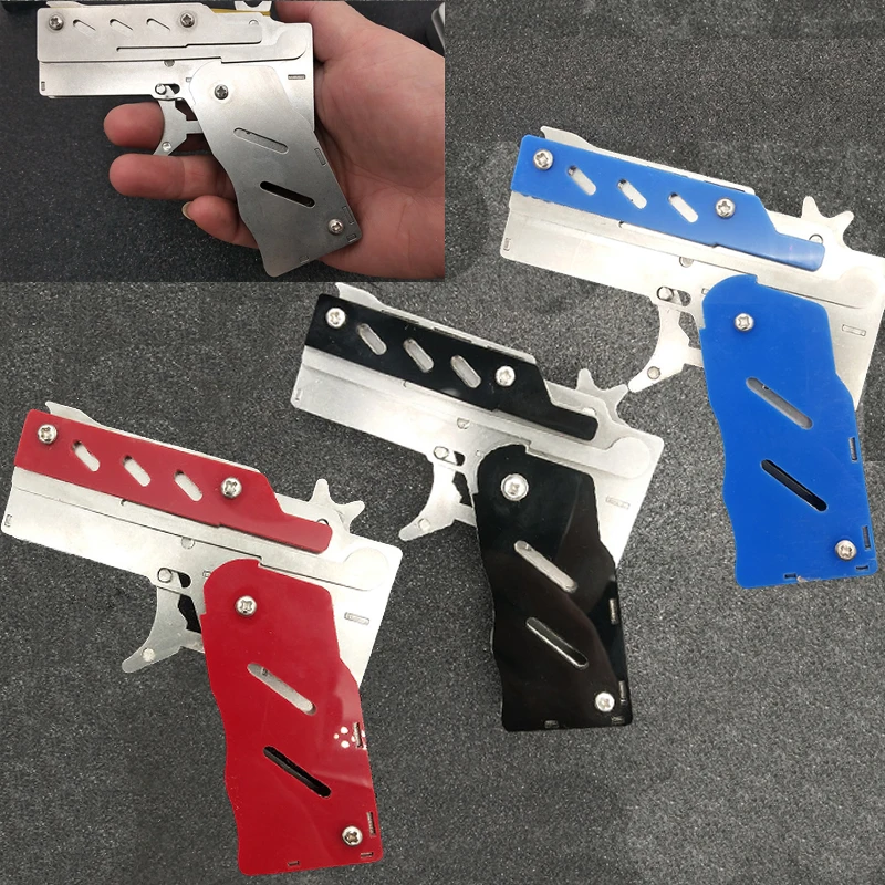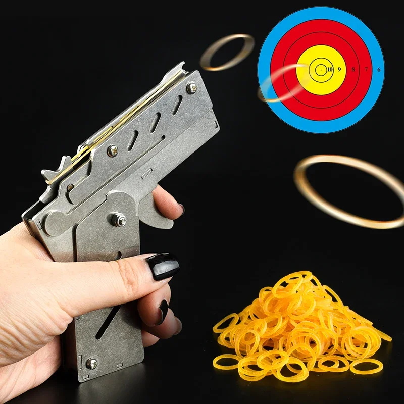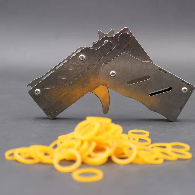 LLavero de pistola de goma de juguete, bandas de goma 100, catapulta elástica para disparar, pistola plegable de aleación para niños, fiesta al aire libre, Metal para niños