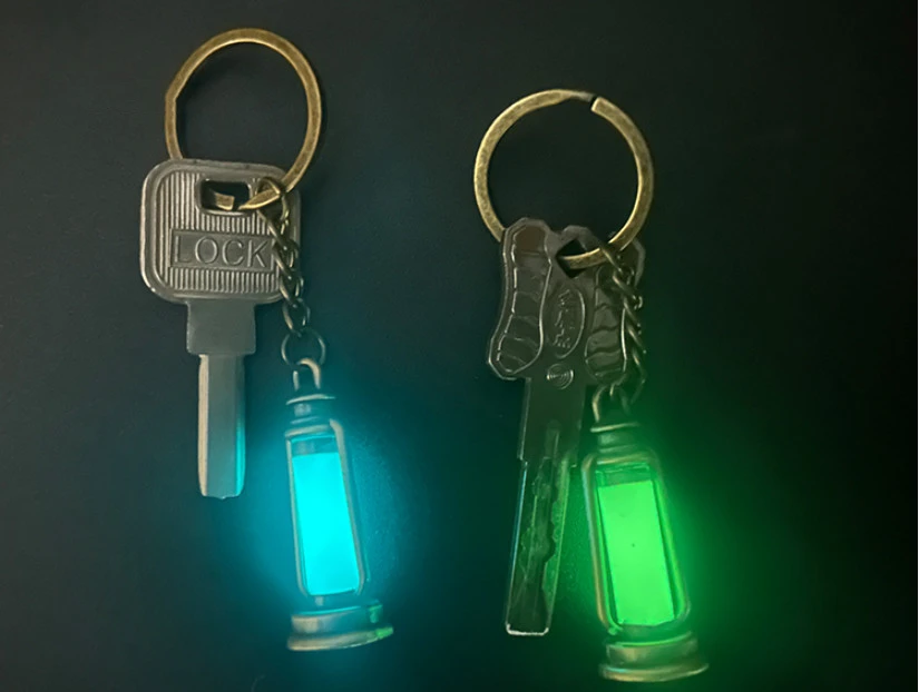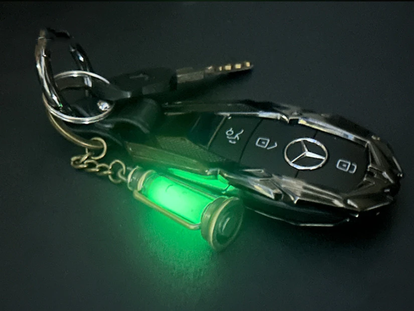 LLavero de resina que brilla en la oscuridad, lámpara portátil luminosa, colgante con cremallera, llavero de Metal para coche, accesorio para vehículo