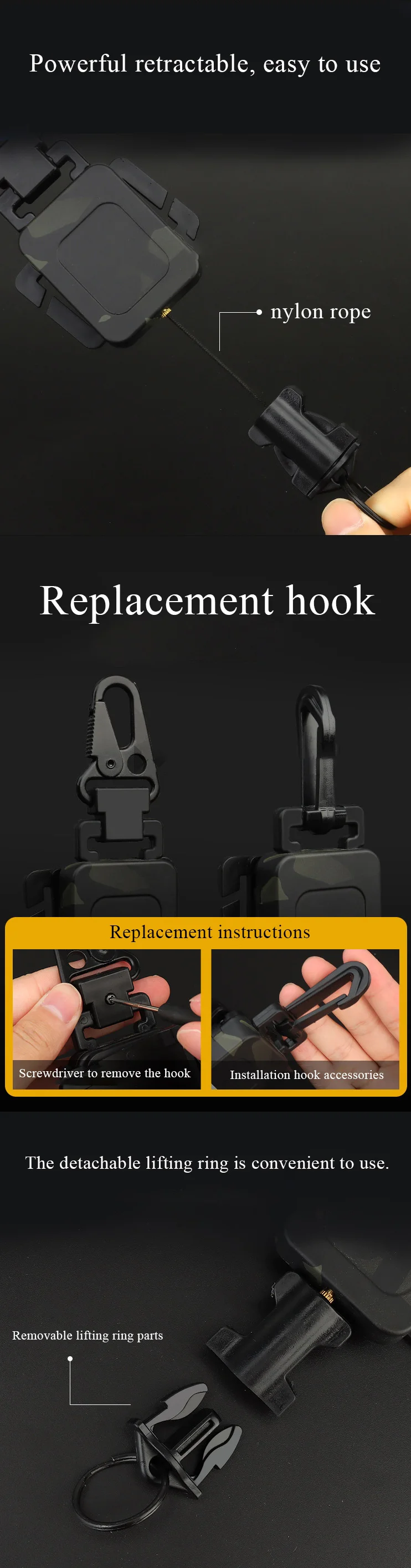 3 ganchos de repuesto, equipados con diferentes ganchos para adaptarse a diferentes entornos de uso.
