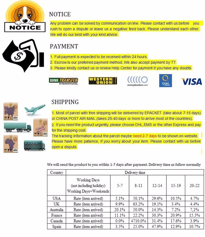1. Debido monitores y a los diferentes efectos de luz, el color real del artículo puede ser ligeramente diferente del color que se muestra en las imágenes.
