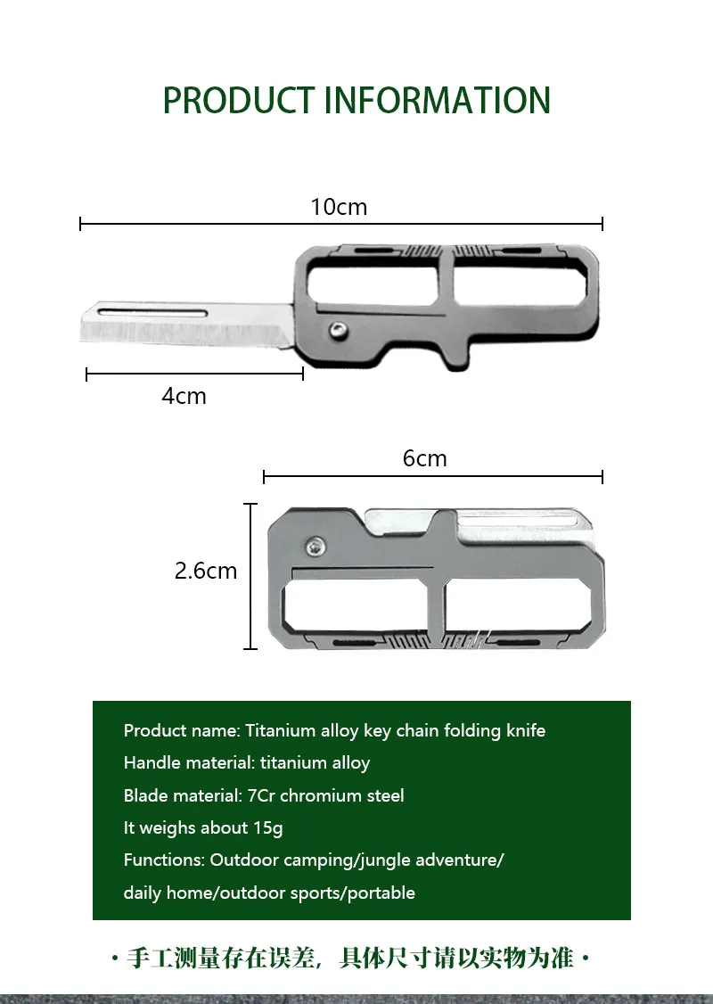 LLavero de titanio portátil, cuchillo multifuncional mini edc, herramienta de apertura, cuchillo plegable pequeño, cuchillo de mensajería de demolición de transporte