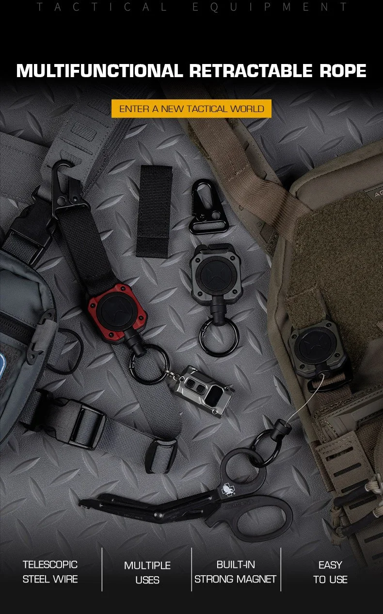 Hebilla táctica Molle antipérdida, cuerda retráctil multifuncional, hebilla de cinturón magnética de Metal de liberación rápida, llavero EDC