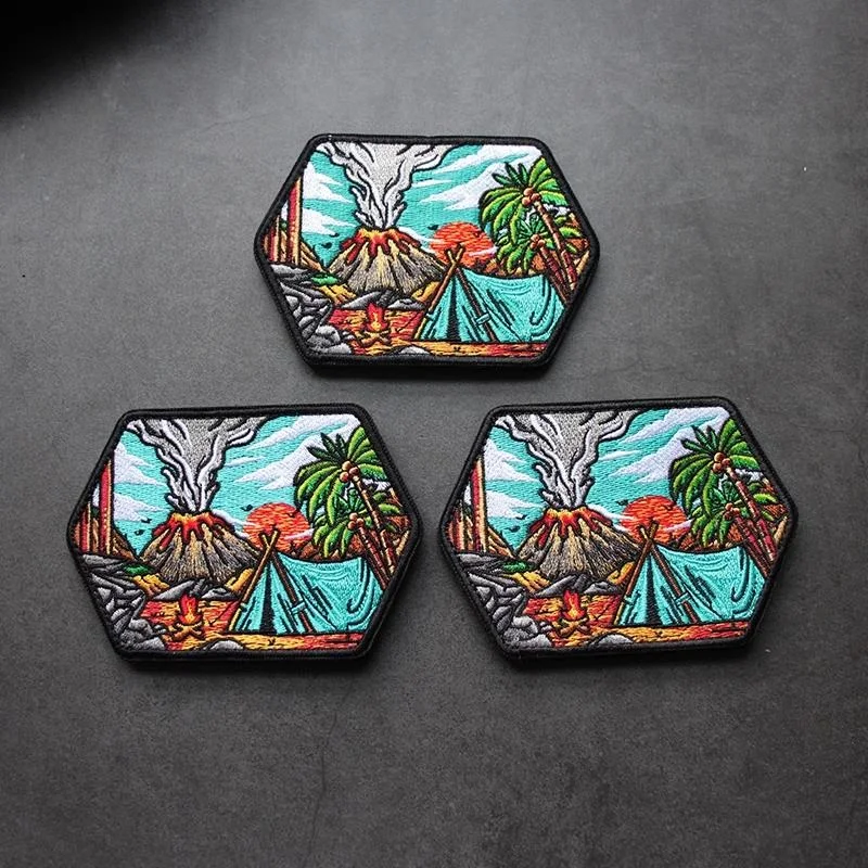 Diseño: brazalete de paisaje volcánico lleno de insignias bordadas
