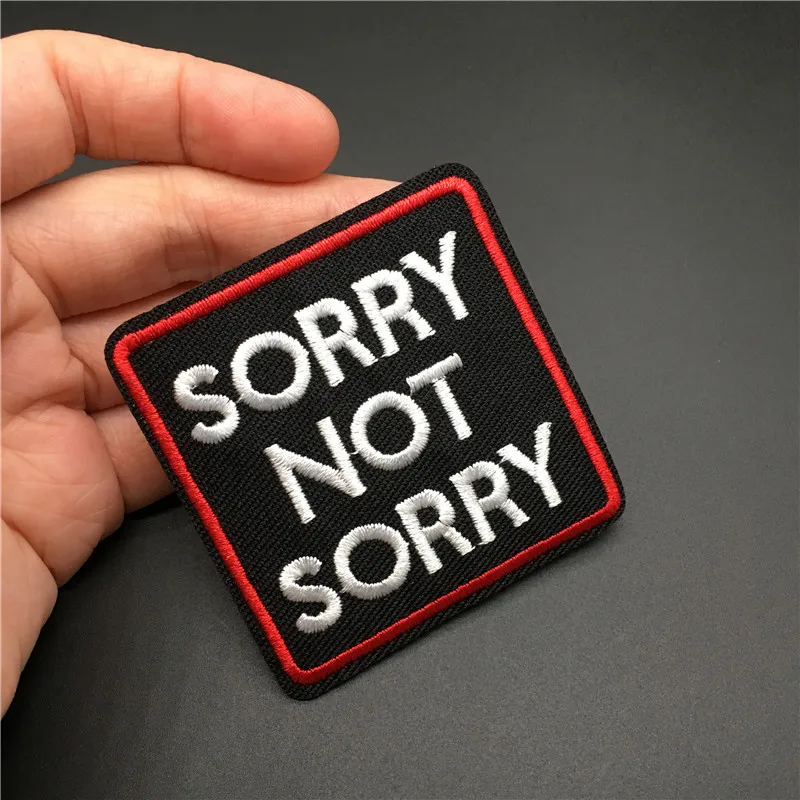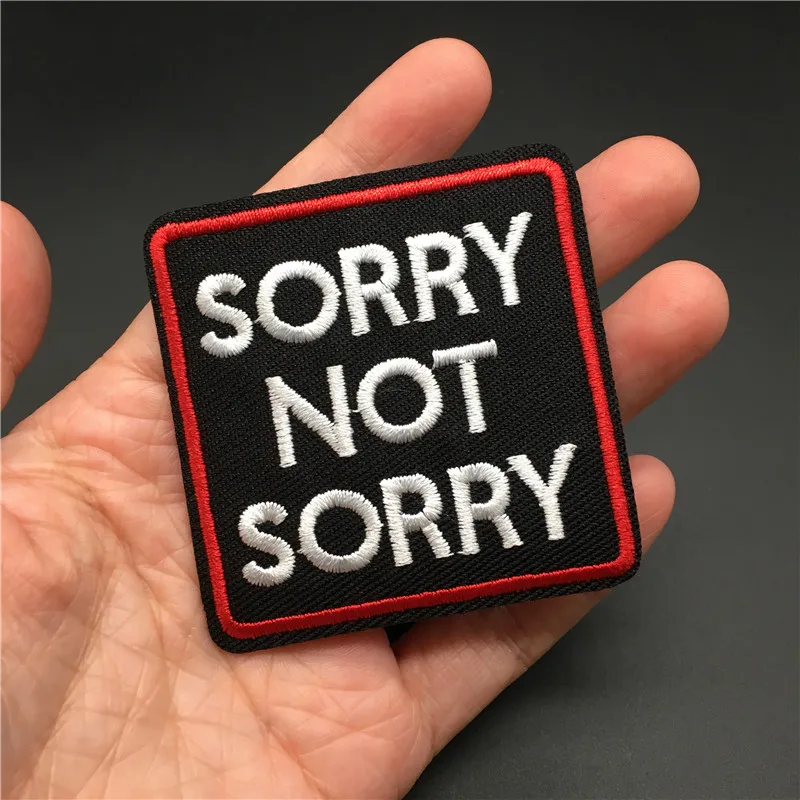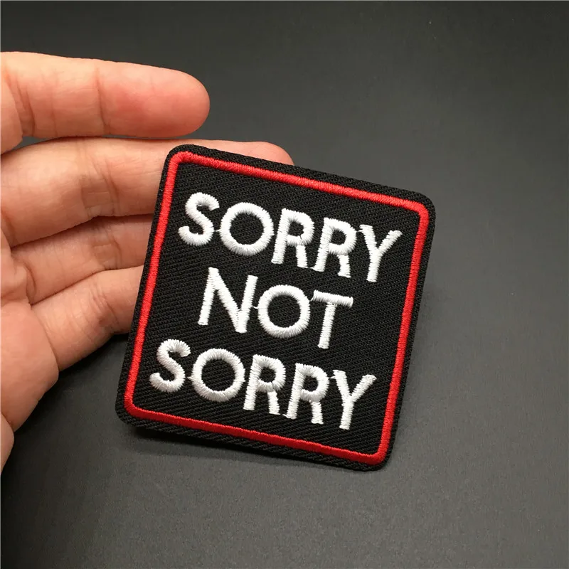 Lo siento no lo siento, parche de hierro DIY en la ropa, insignia, pegatinas de costura, apliques de decoración, rayas bordadas para ropa
